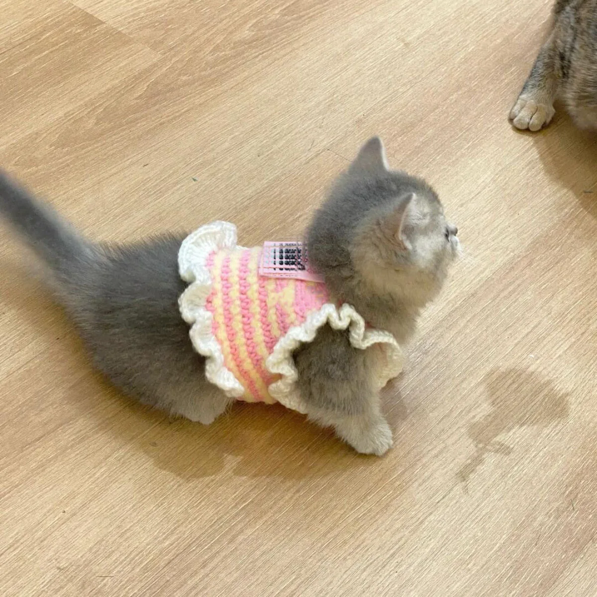 Chaleco tejido para gatos de otoño/invierno para mascotas, abrigo pequeño de peluche Yorkshire, ropa de Navidad para perros, ropa para perros pequeños