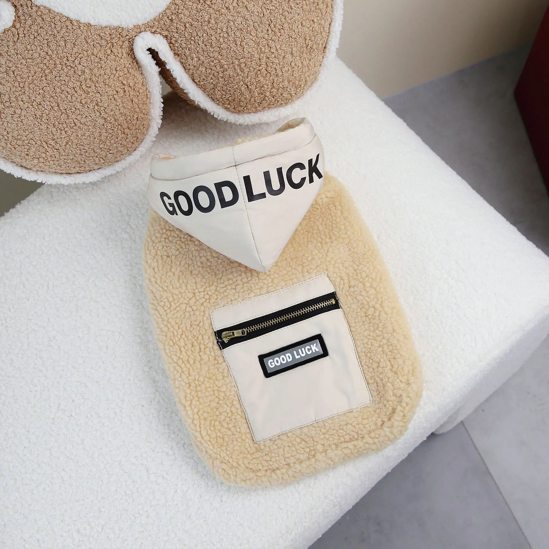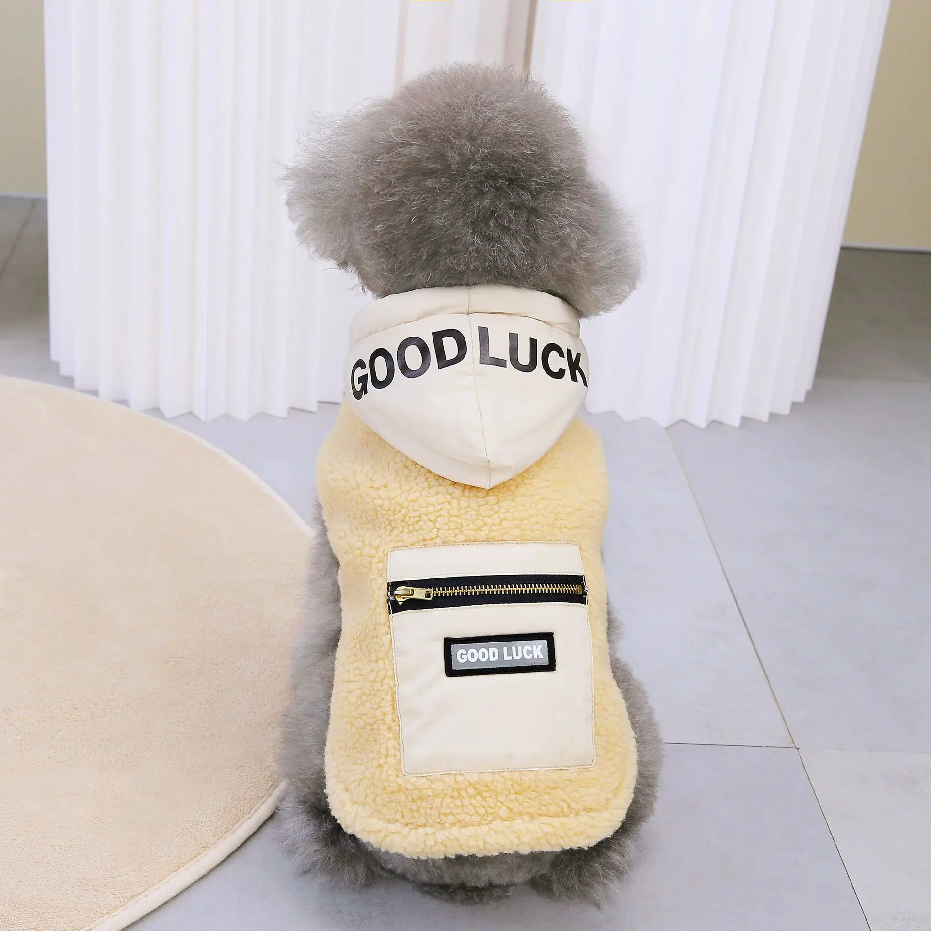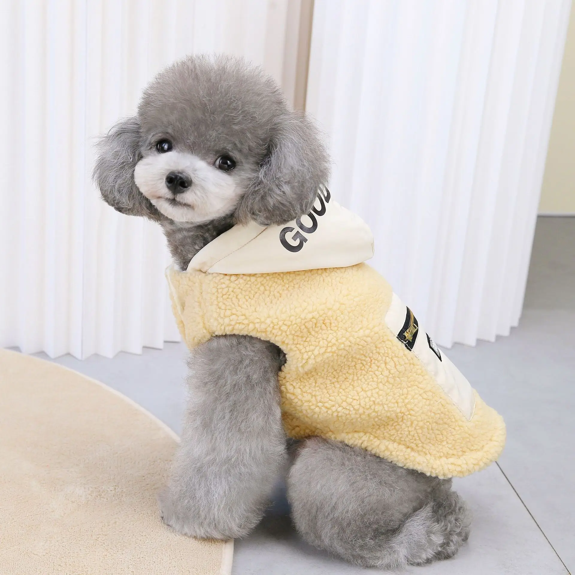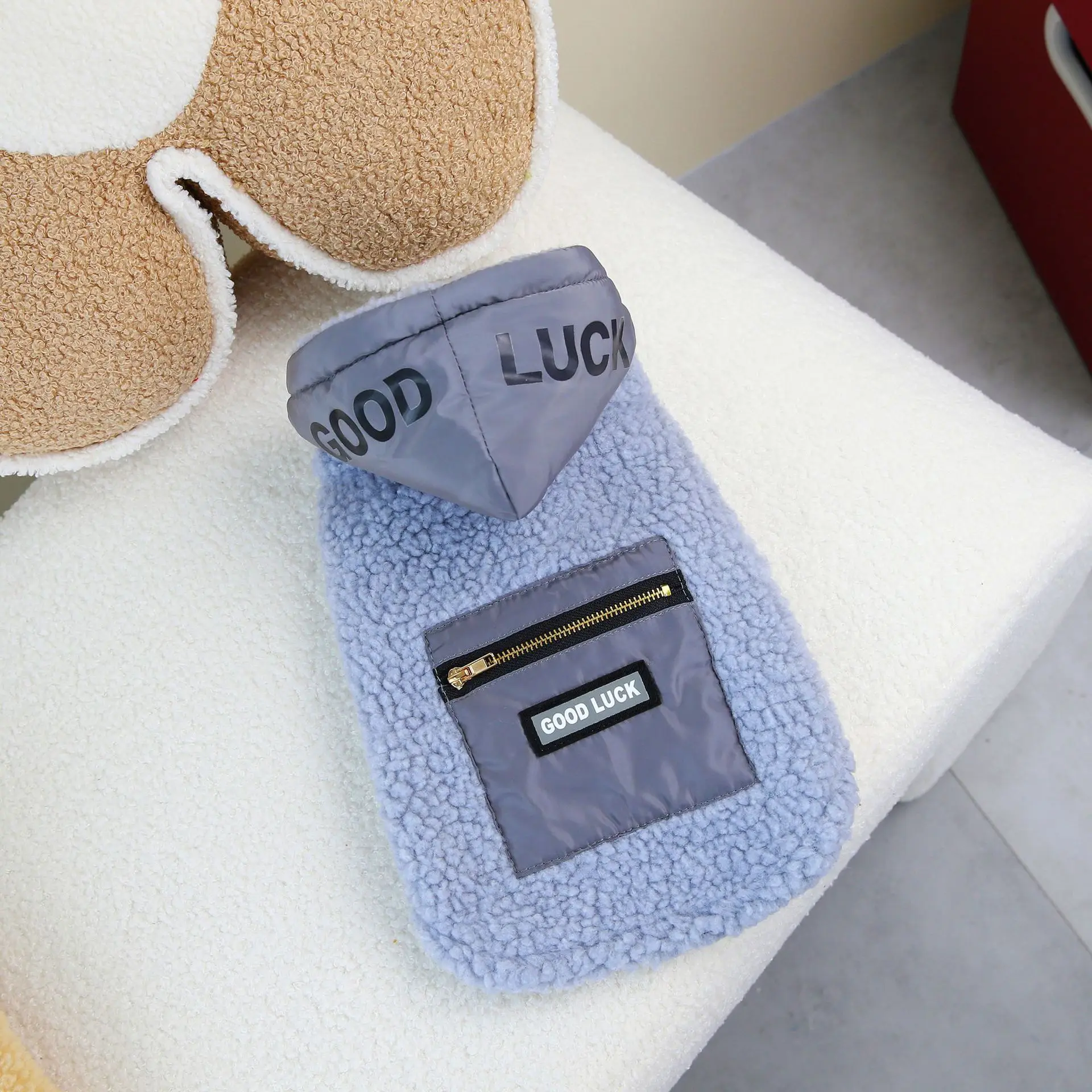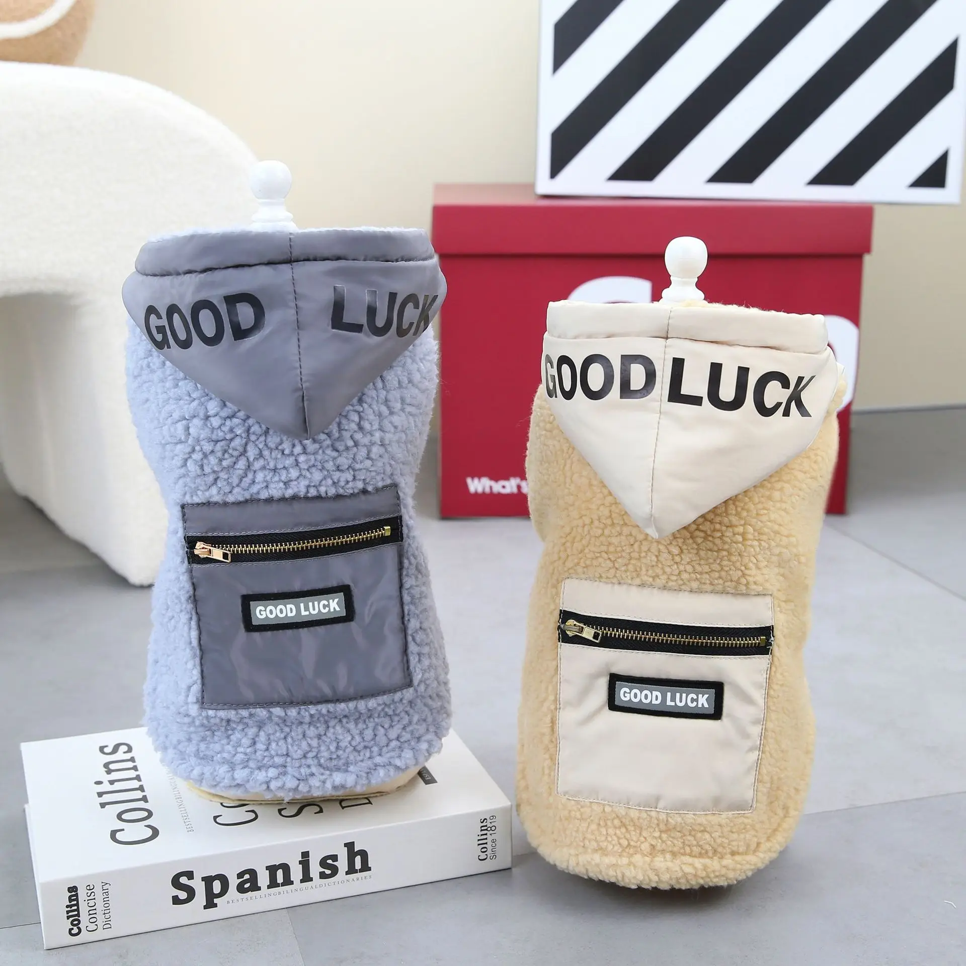 Chaleco de terciopelo de cordero para mascotas, Sudadera con capucha para perros, ropa para mascotas de gato de peluche, Sudadera con capucha con bolsillo para perros pequeños, Otoño/Invierno