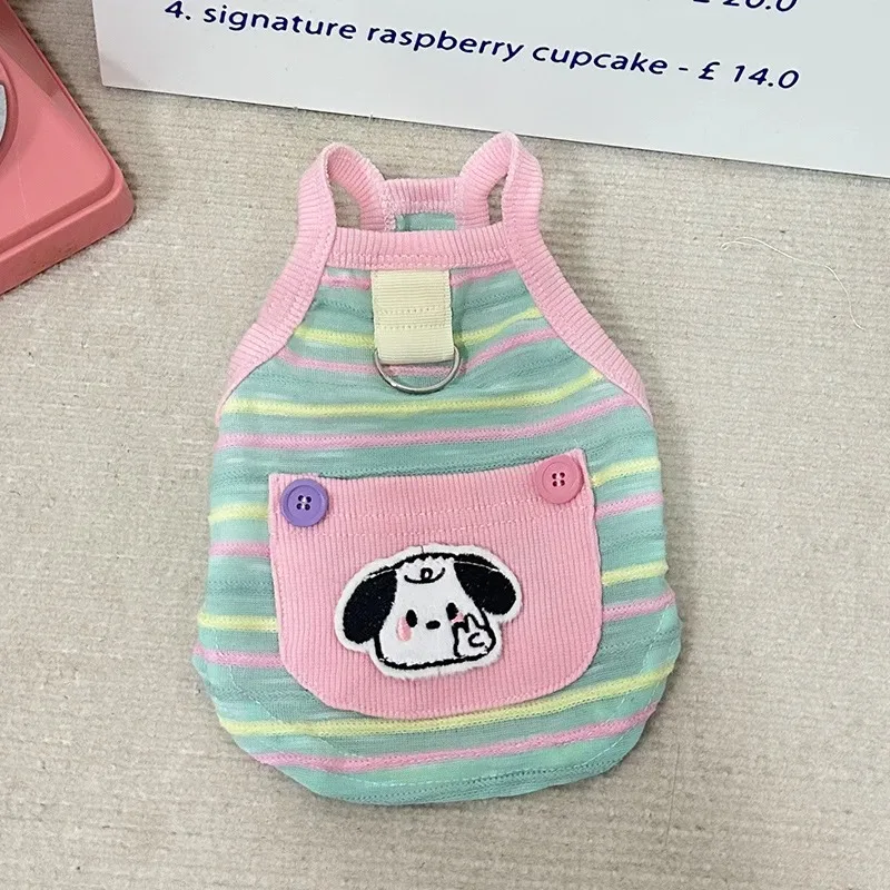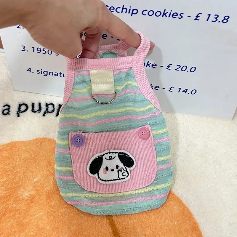 Chaleco con tirantes para perros, ropa Ins, ropa de protección fina de verano, tirantes a rayas de colores, oso de peluche, ropa para perros pequeños