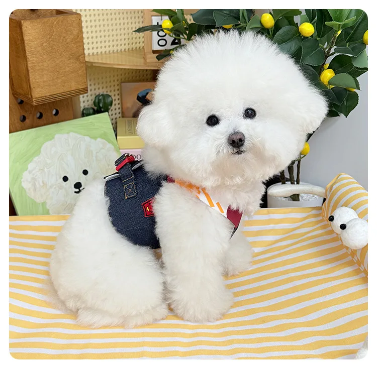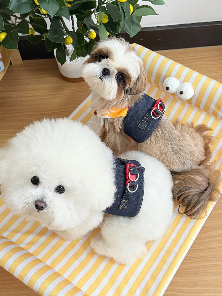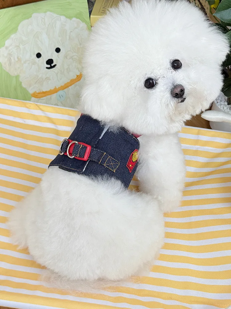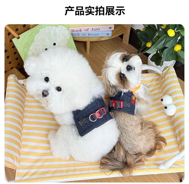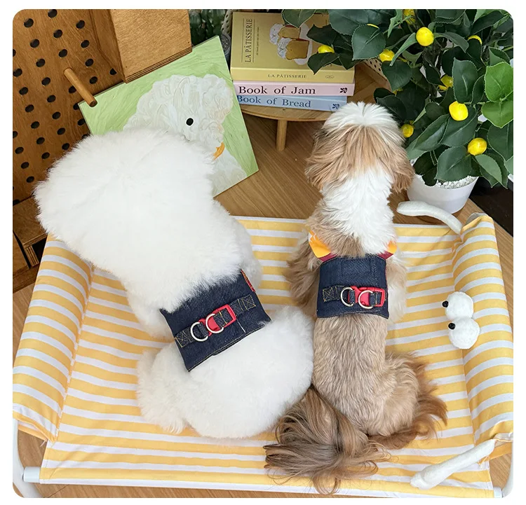 Chaleco de tracción de mezclilla para mascotas, ropa para el pecho y la espalda, accesorios transpirables para perros pequeños, arnés para perros y cachorros