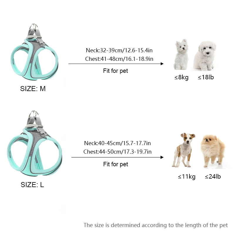M Pecho para mascotas 41 cm -- 48 cm, cuello 32 cm -- 39 cm, apto para mascotas de 3-6 kg