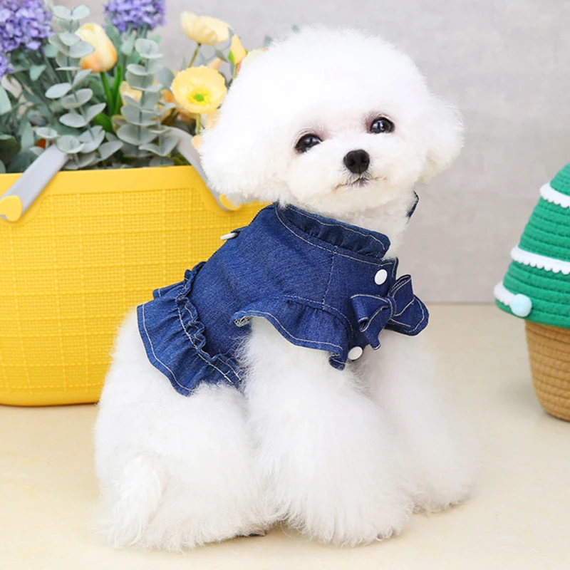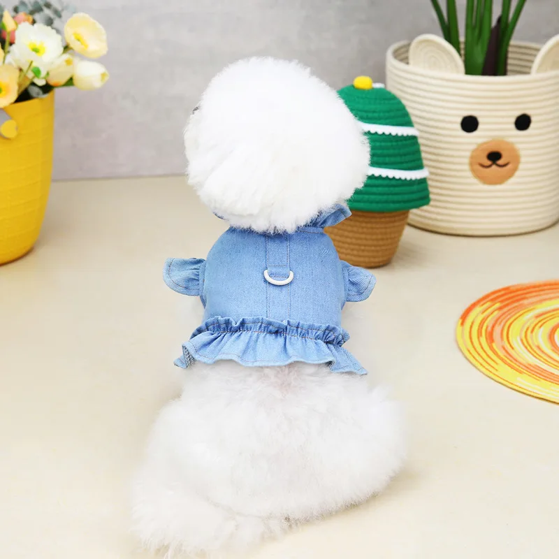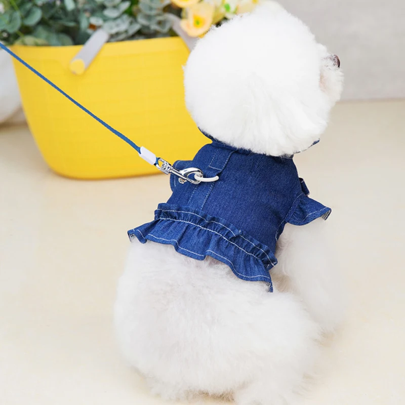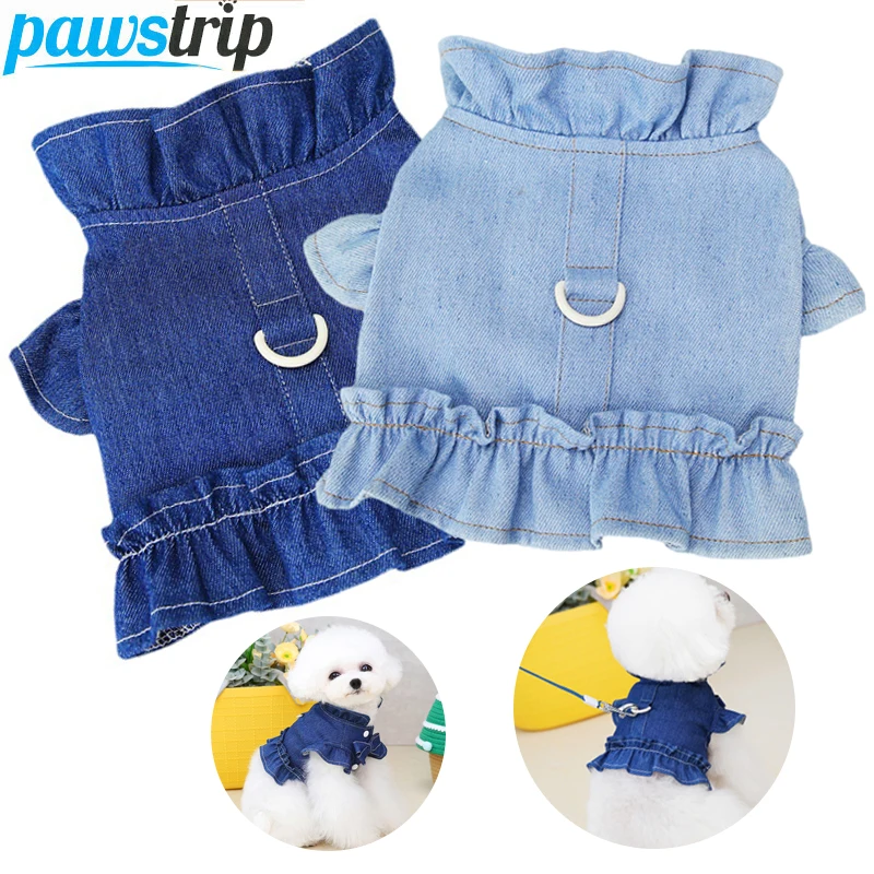 Chaleco vaquero con anillo en D de tracción para perro, ropa de verano para perros pequeños, vestido transpirable para cachorros, falda para Chihuahua y Yorkies