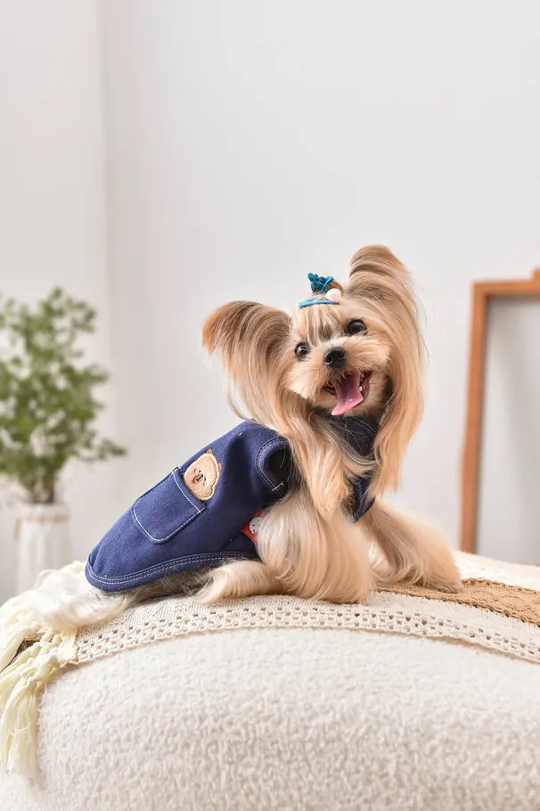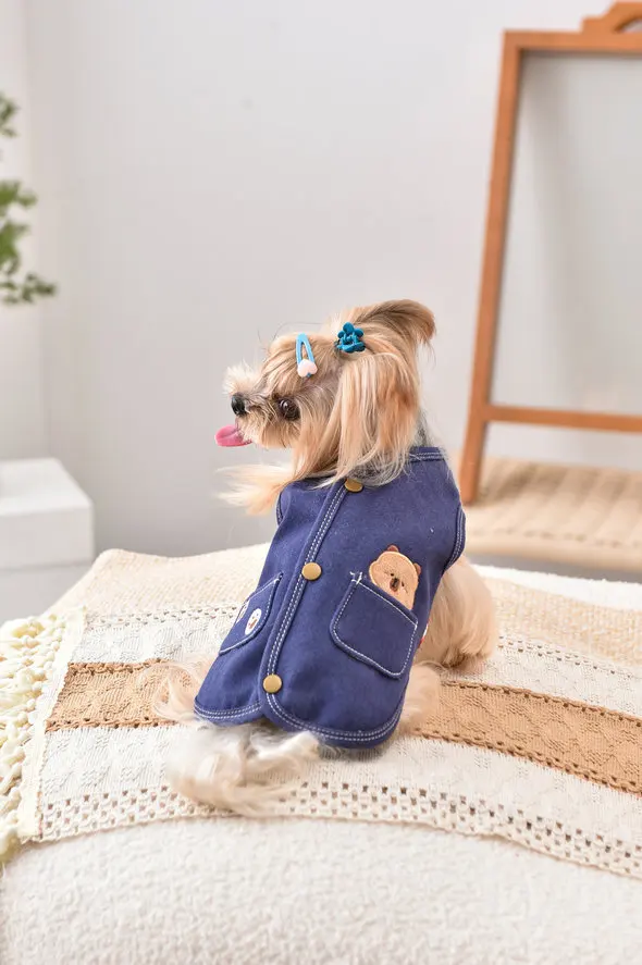 Chaleco vaquero de otoño/invierno para mascotas, ropa para perros, abrigo Schnauzer de peluche, camiseta sin mangas para mascotas pequeñas, ropa para cachorros, ropa de Navidad para perros