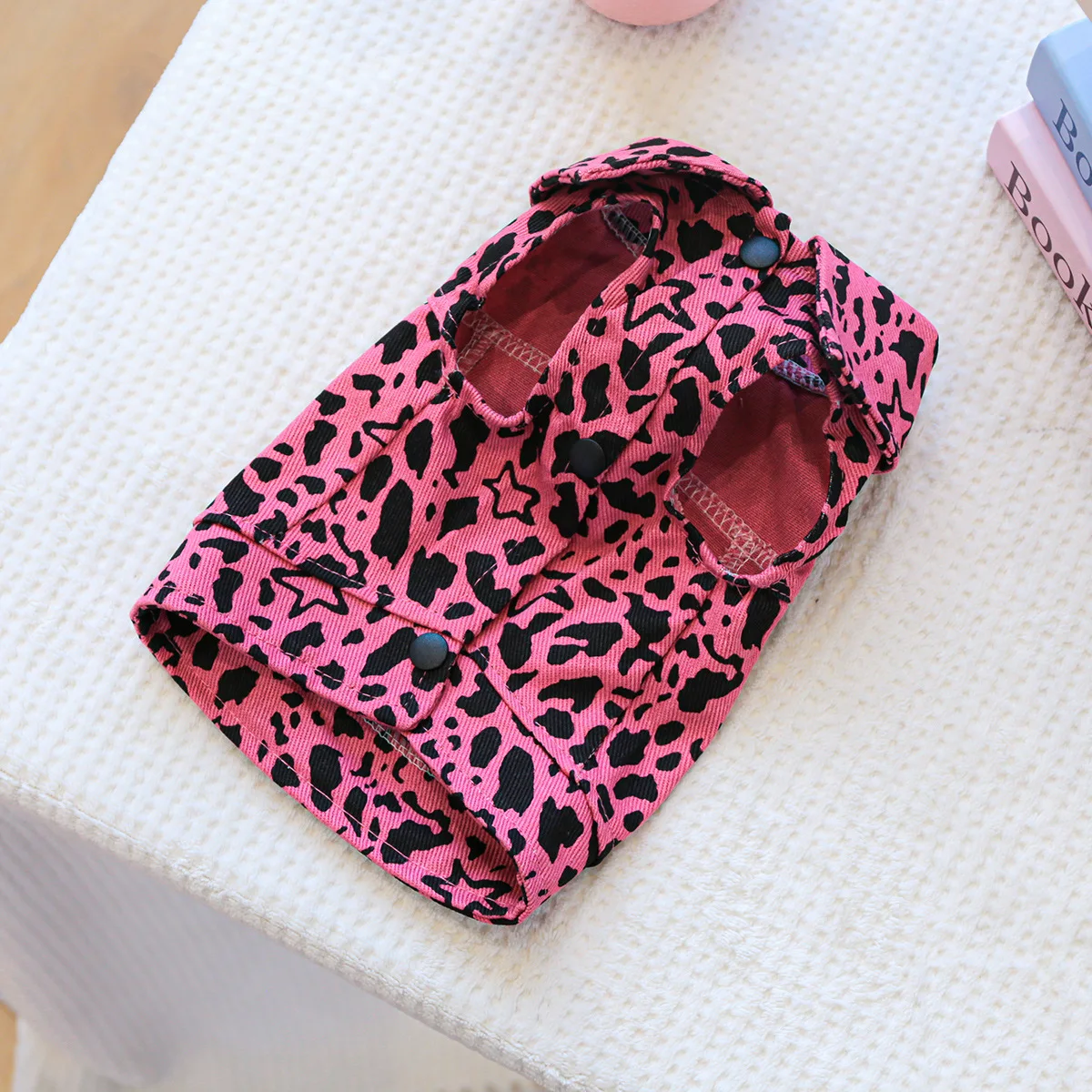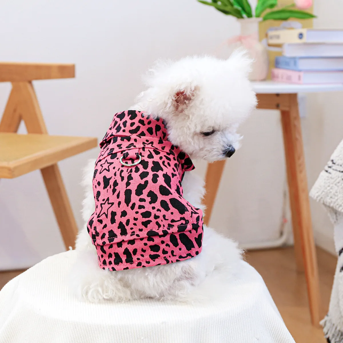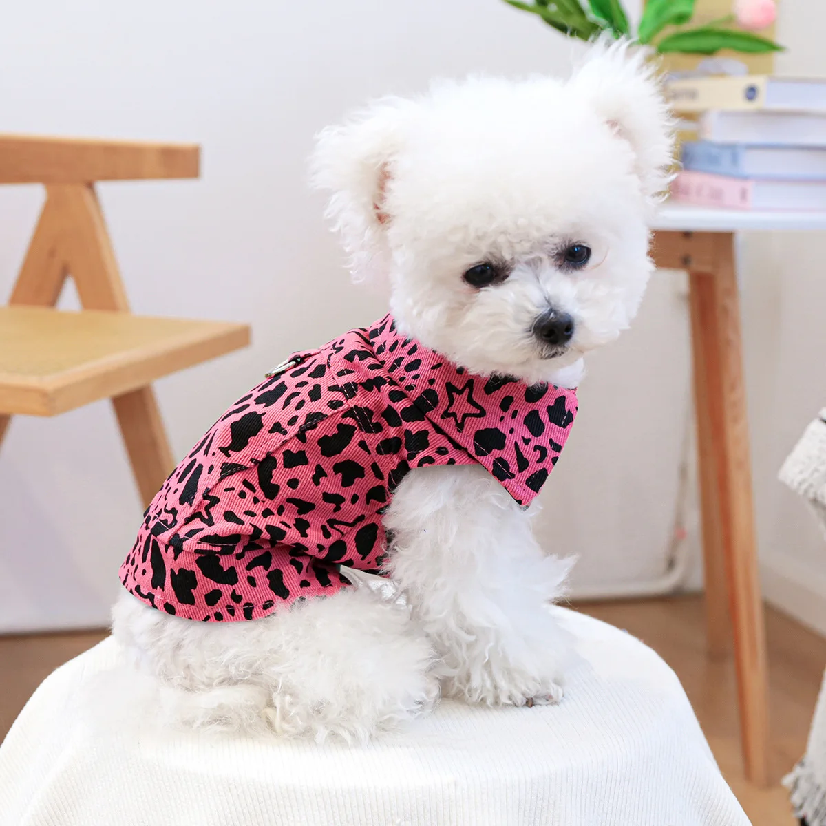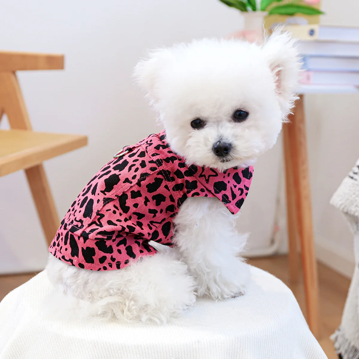 Chaleco vaquero de primavera para mascotas, ropa para gatos, ropa vaquera con estampado de leopardo rosa, ropa para perros pequeños, ropa para cachorros