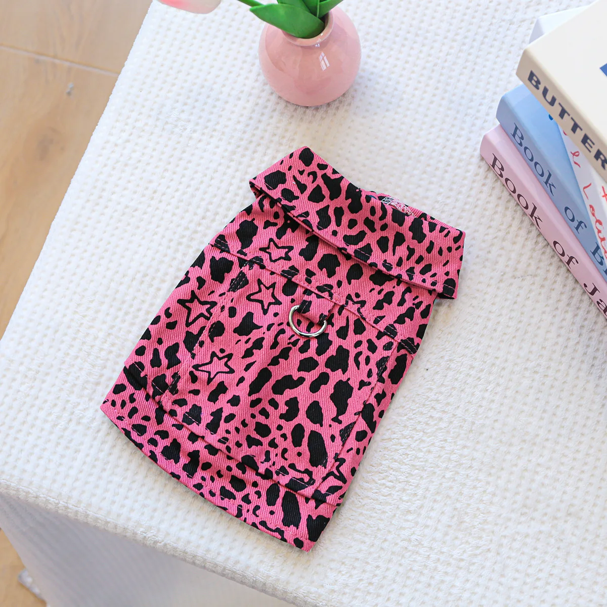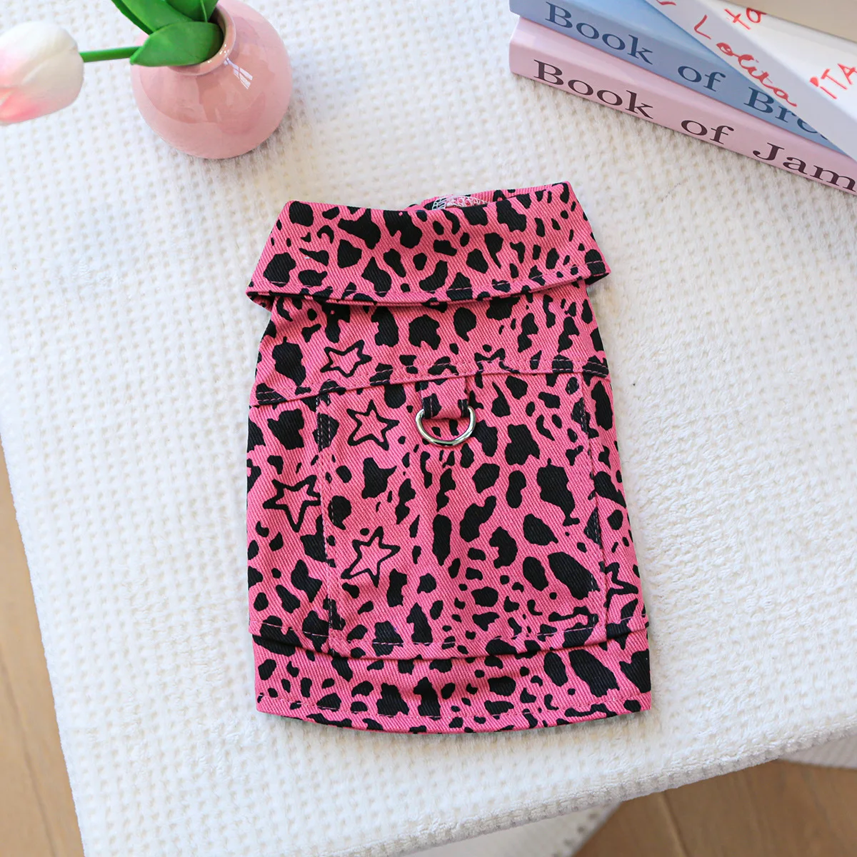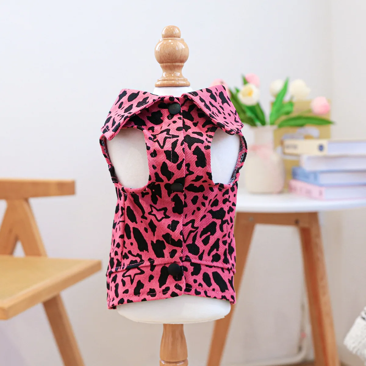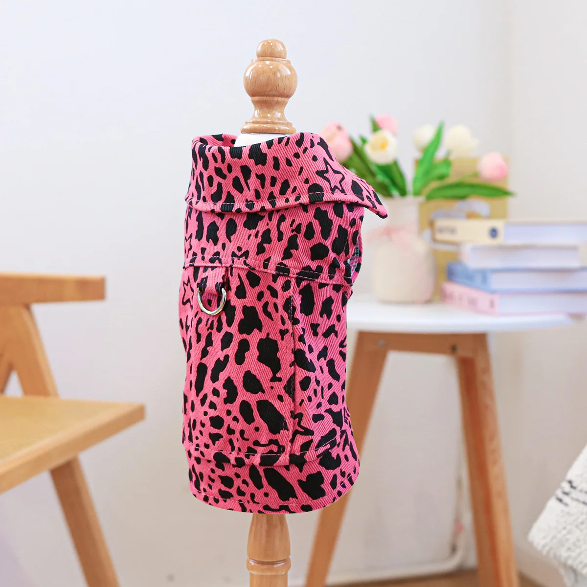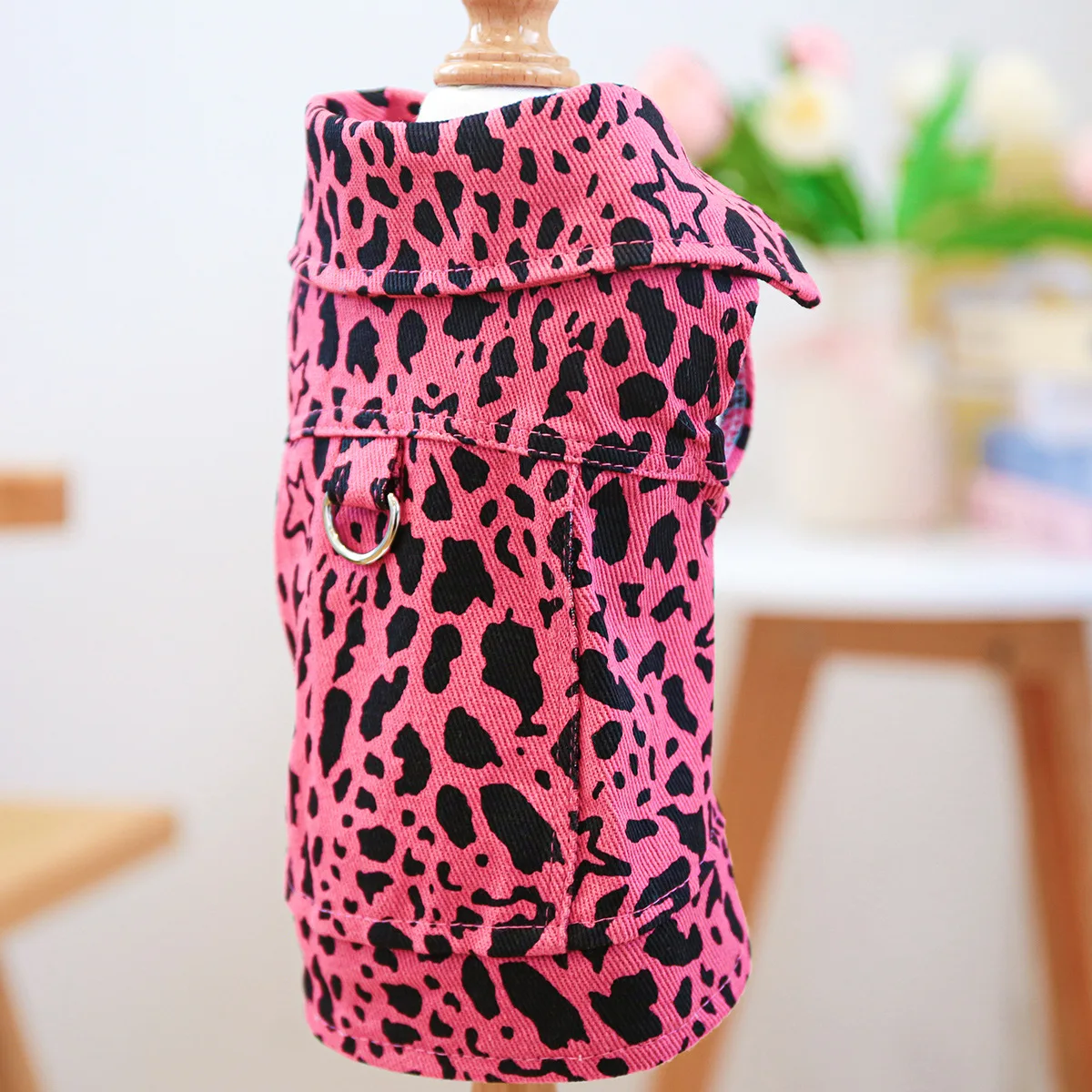 Chaleco vaquero de primavera para mascotas, ropa para gatos, ropa vaquera con estampado de leopardo rosa, ropa para perros pequeños, ropa para cachorros