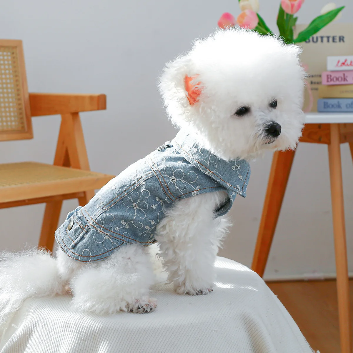 Chaleco vaquero de primavera para mascotas, ropa para perros, chaqueta bordada, ropa para perros pequeños, accesorios de ropa para cachorros