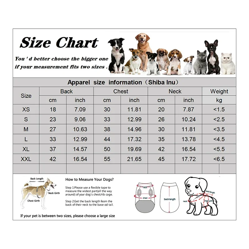 Rango de tallas:Seis tamaños desde XS a XXL para adaptarse perfectamente a la mayoría de las razas de perros.