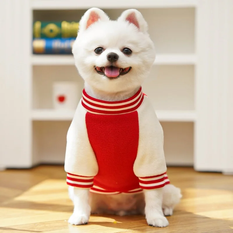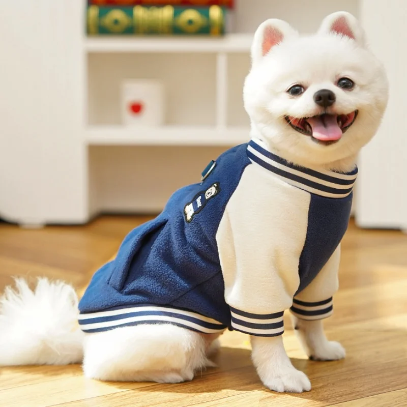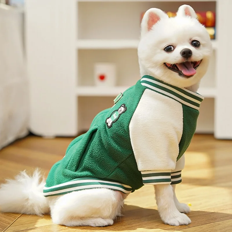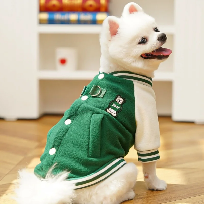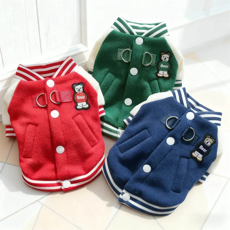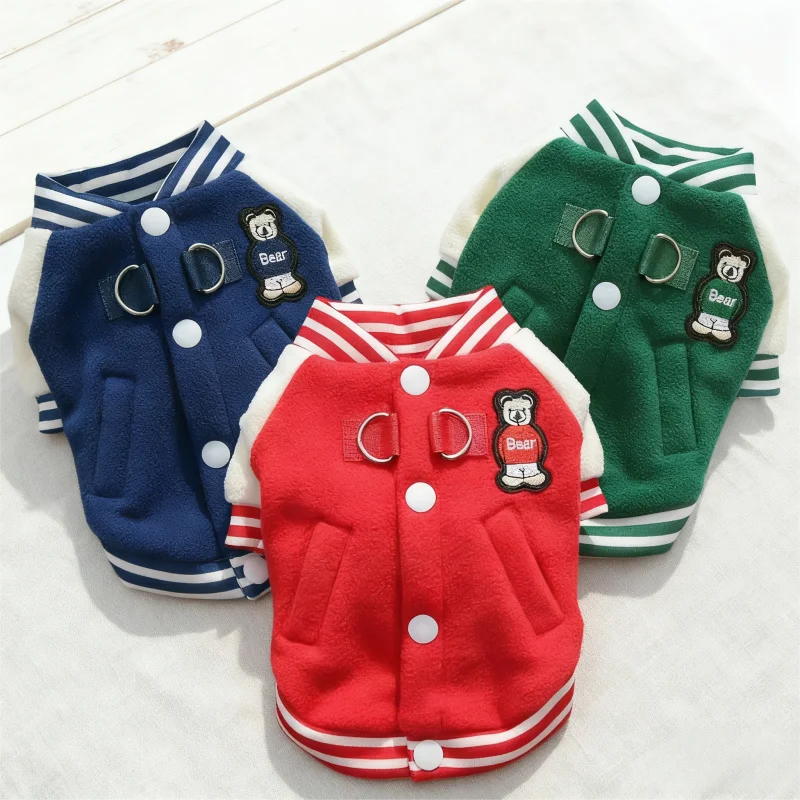 Chaqueta de béisbol para mascotas con parche de oso a la moda, chaqueta cálida de lana para perros, abrigo, ropa de invierno para cachorros, abrigo con capucha de gato suave y bonito, ropa para perros