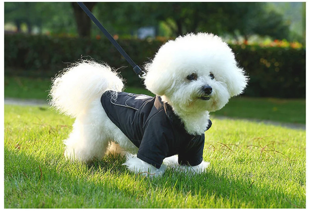 Chaqueta cálida a prueba de viento para perros, chaleco, ropa de invierno para mascotas con arnés, abrigo para perro Bulldog Francés, Chihuahua, disfraz para cachorros pequeños y medianos