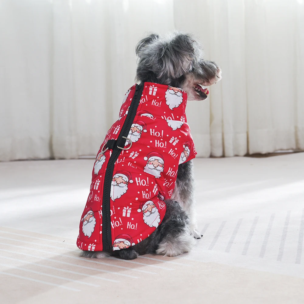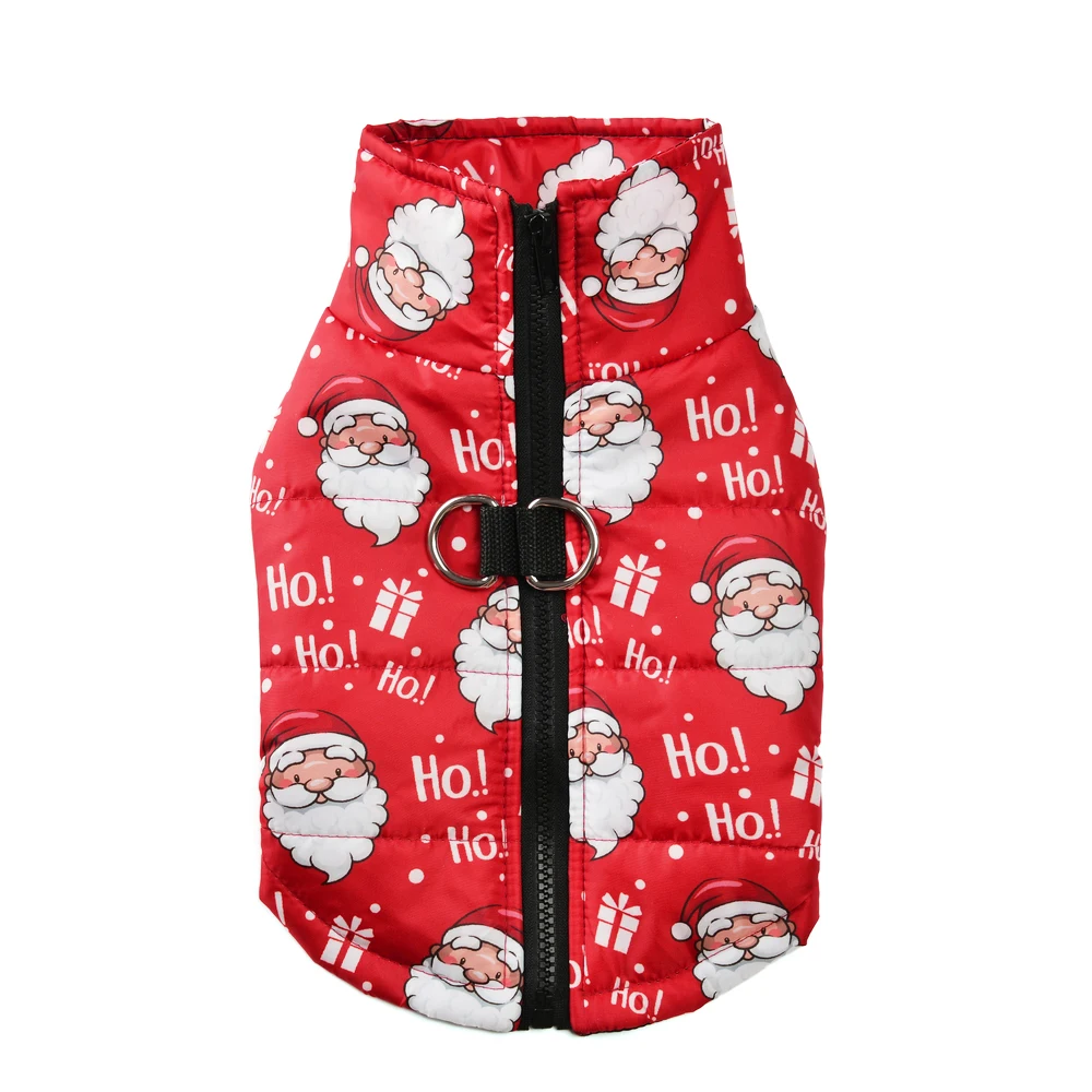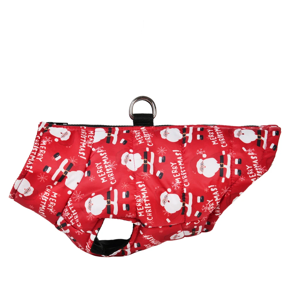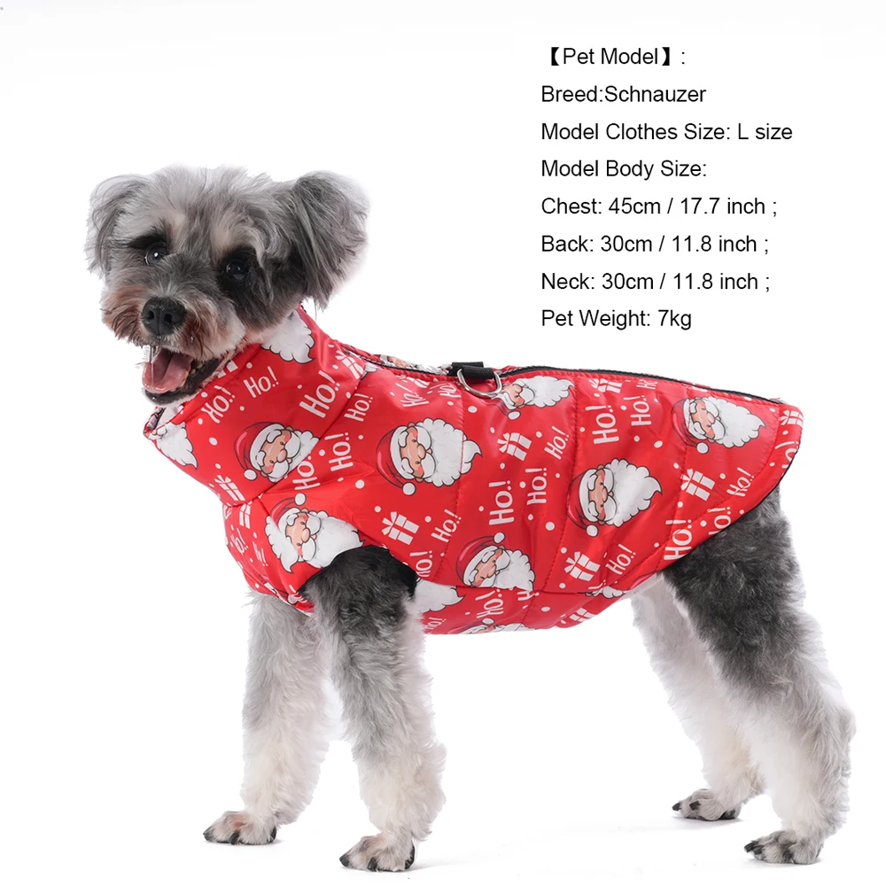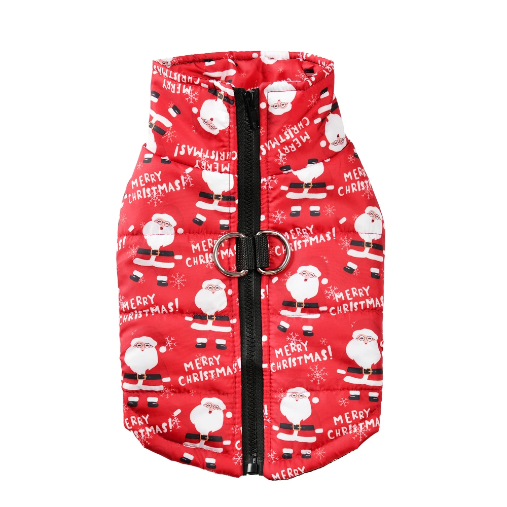 Chaqueta cálida para perros pequeños y medianos, gatos, estampado de Papá Noel, invierno, a prueba de viento con anillo en D, ropa para cachorros, disfraz de mascota Yorkshire