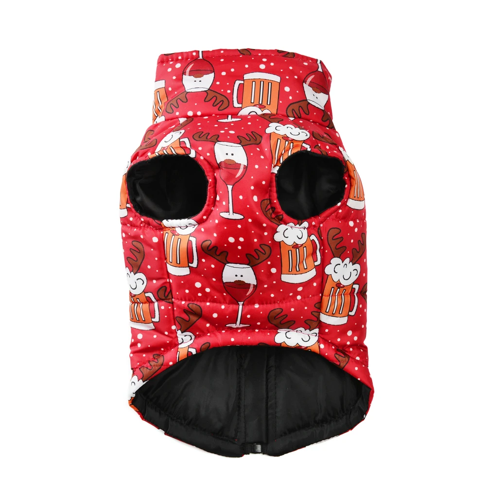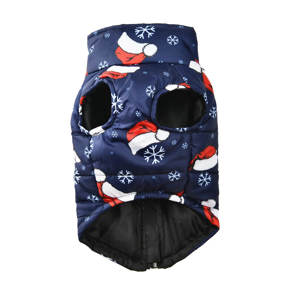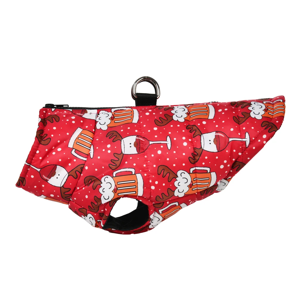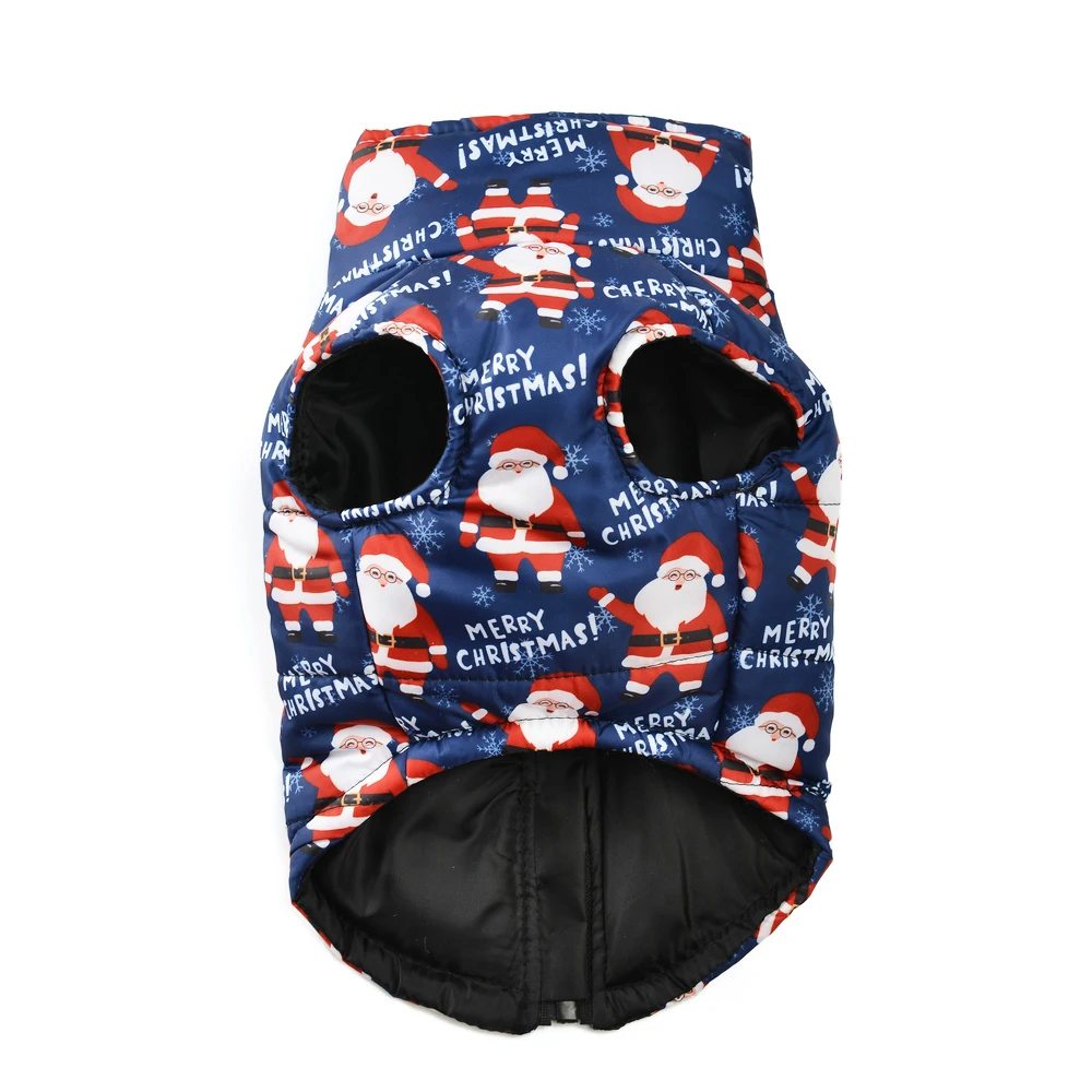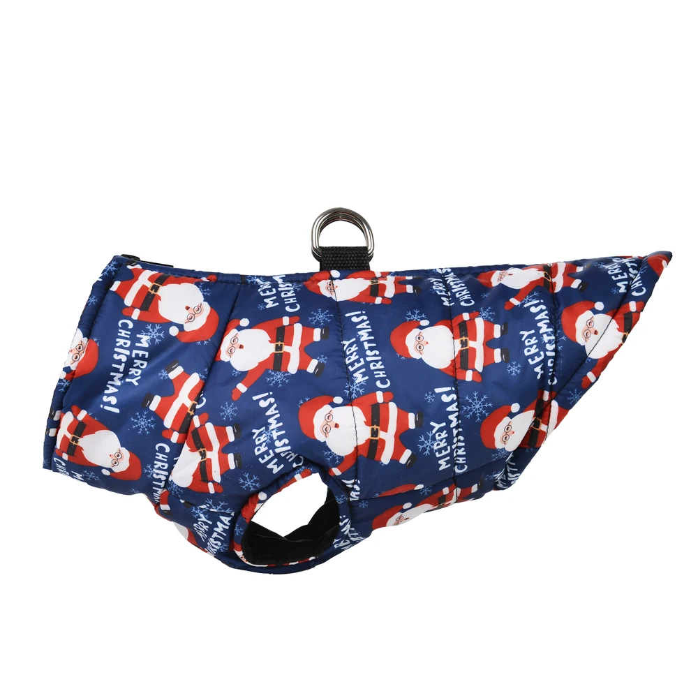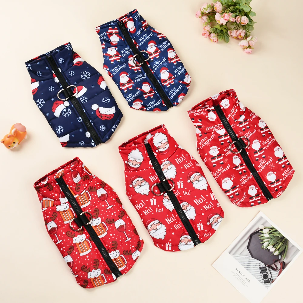 Chaqueta cálida para perros pequeños y medianos, gatos, estampado de Papá Noel, invierno, a prueba de viento con anillo en D, ropa para cachorros, disfraz de mascota Yorkshire
