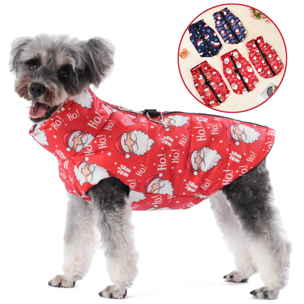 Chaqueta cálida para perros pequeños y medianos, gatos, estampado de Papá Noel, invierno, a prueba de viento con anillo en D, ropa para cachorros, disfraz de mascota Yorkshire
