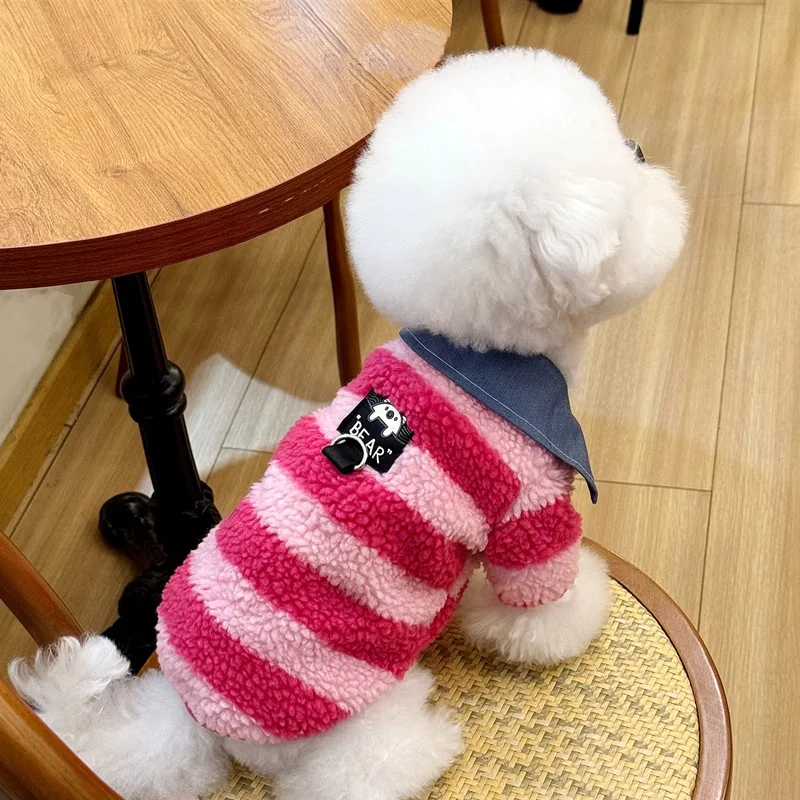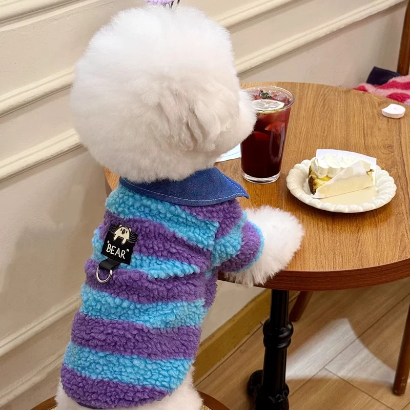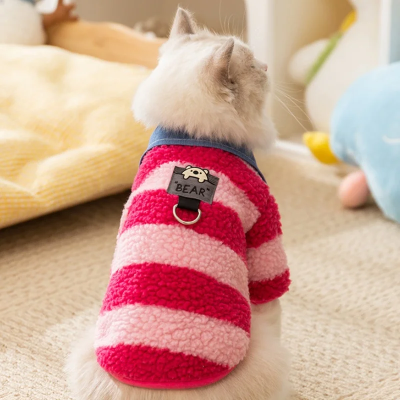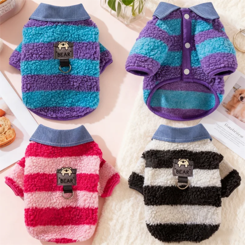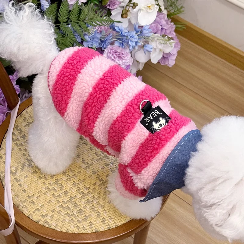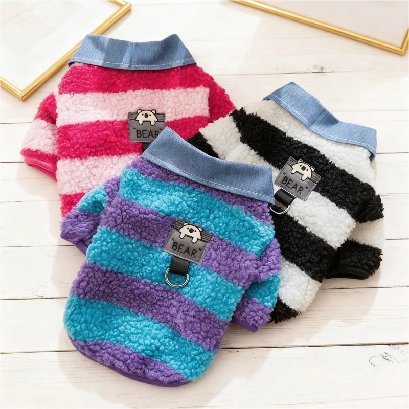 Chaqueta cálida de felpa para perro, ropa de lujo para perro a rayas, linda chaqueta suave para cachorro, abrigo con capucha de gato de invierno, chaqueta para mascota, abrigo, trajes para perro