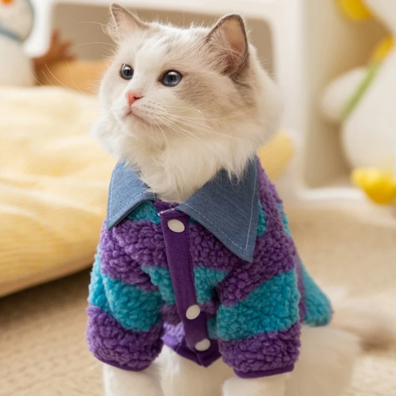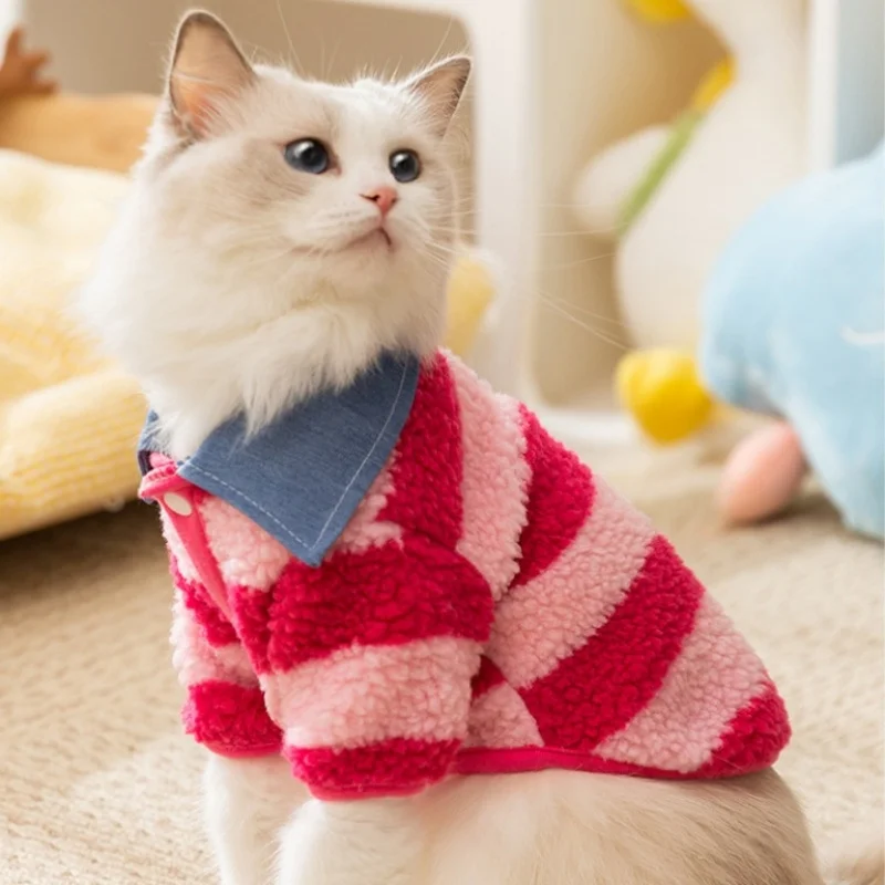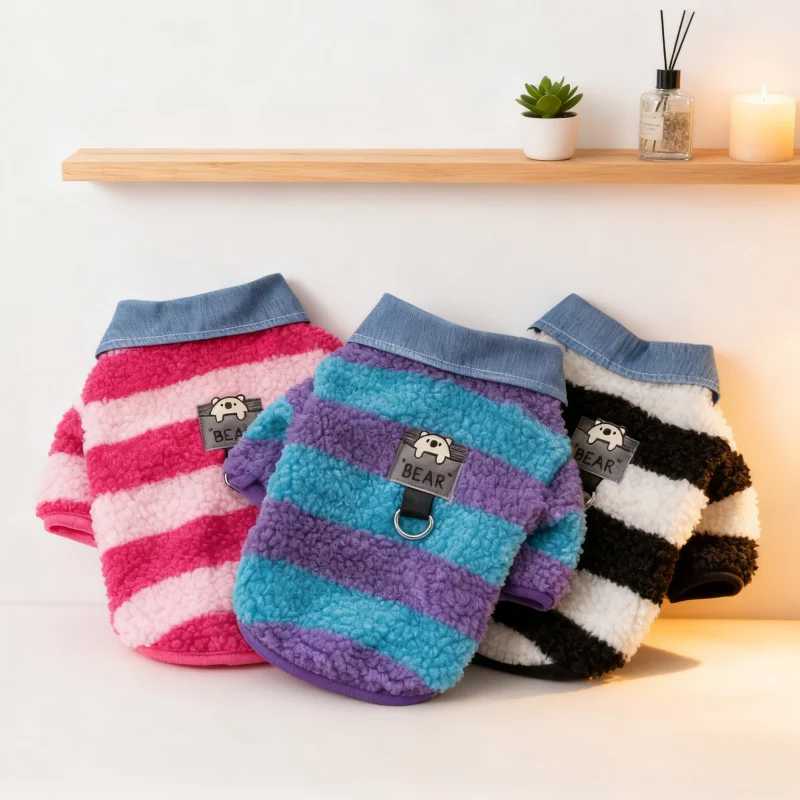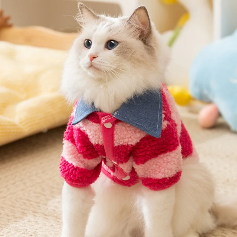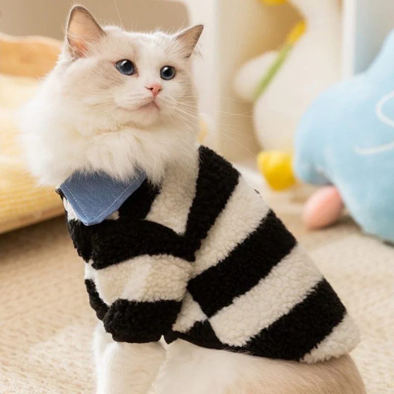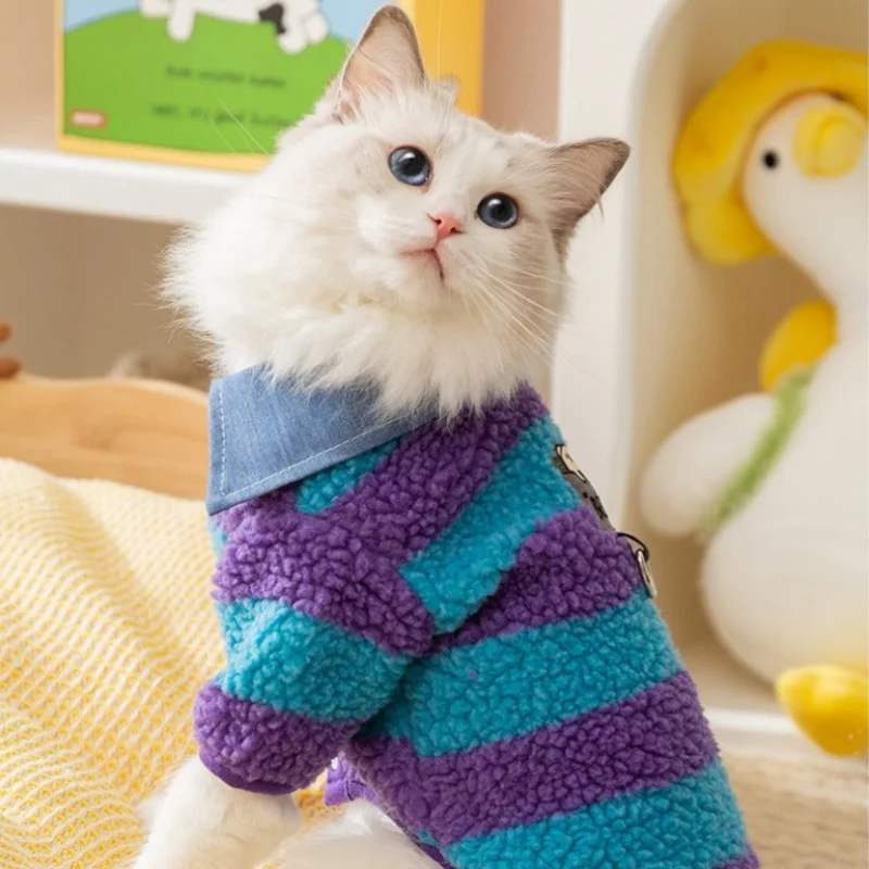 Chaqueta cálida de felpa para perro, ropa de lujo para perro a rayas, linda chaqueta suave para cachorro, abrigo con capucha de gato de invierno, chaqueta para mascota, abrigo, trajes para perro