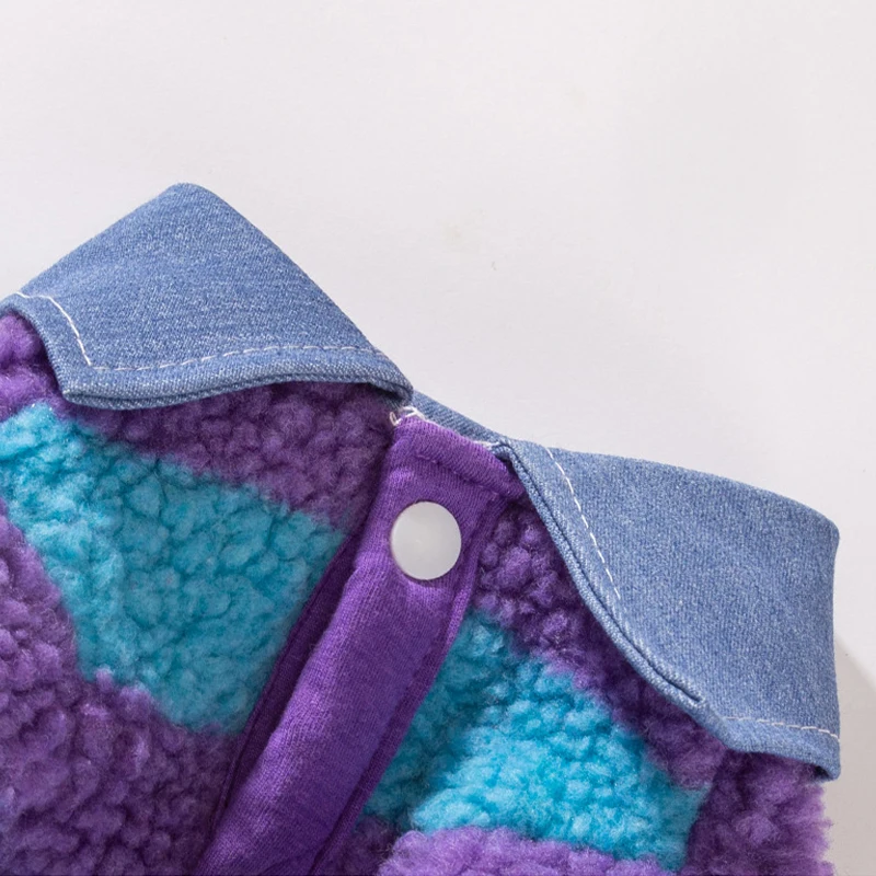 Característica:Camisa a rayas/Cuello vaquero/Viene con hebilla de tracción/Más conveniente para viajar/Tejido de mezclilla de lana de cordero/Suave y cómodo/Agradable para la piel y delicado/Hermoso y cálido