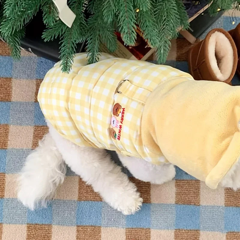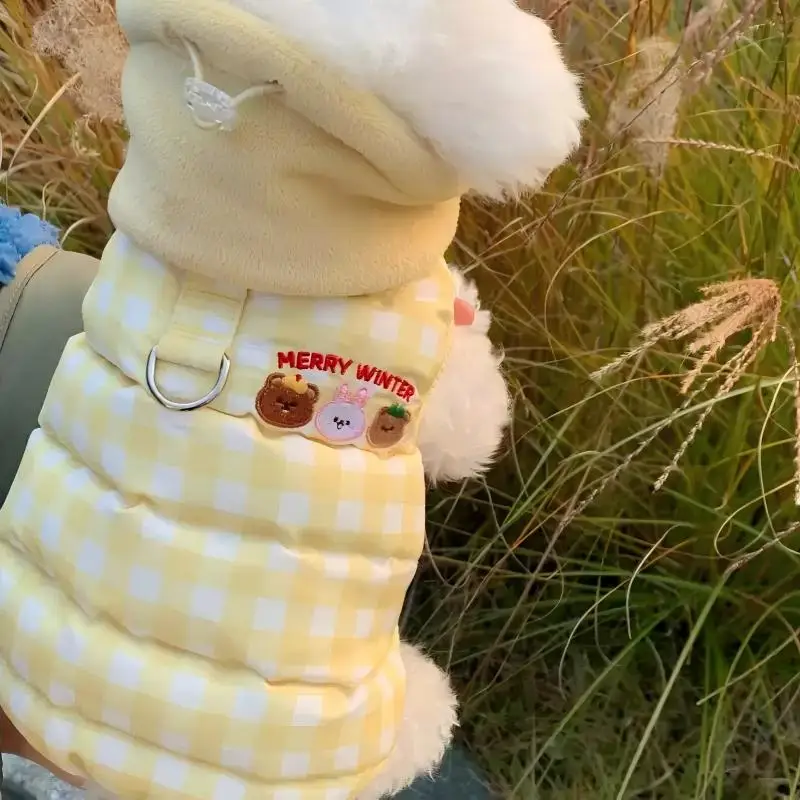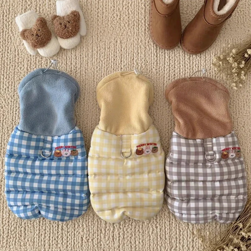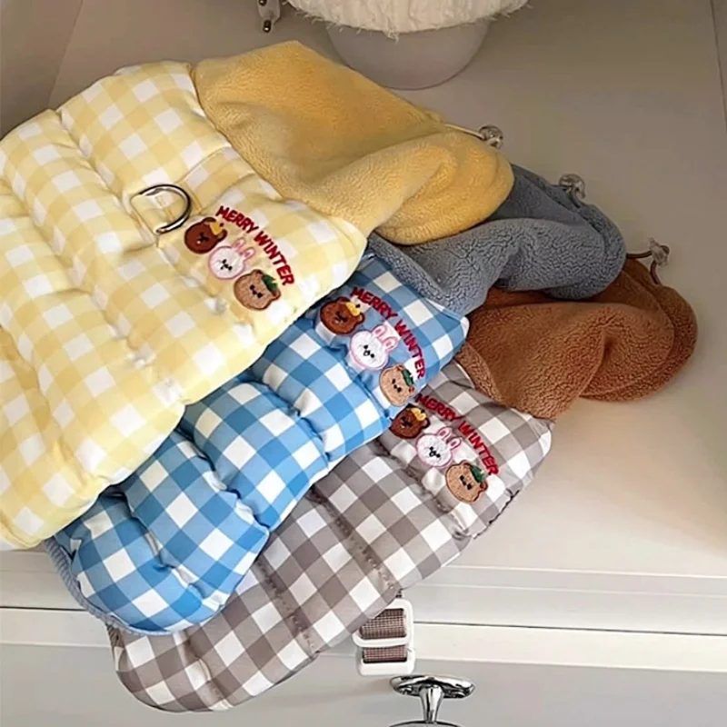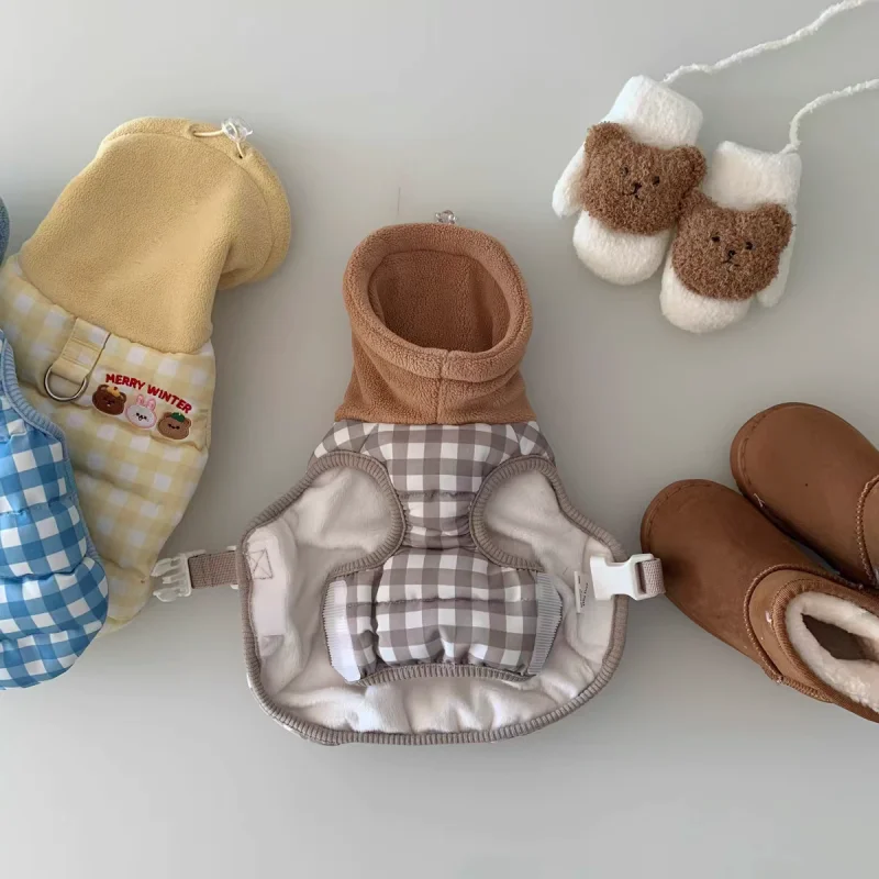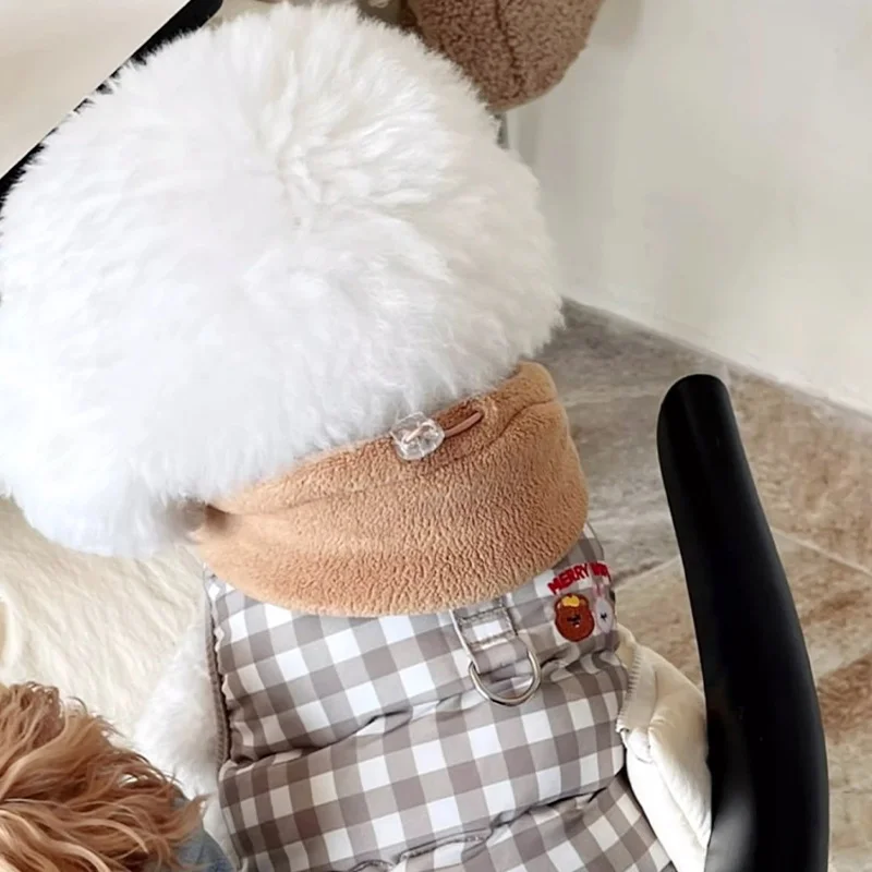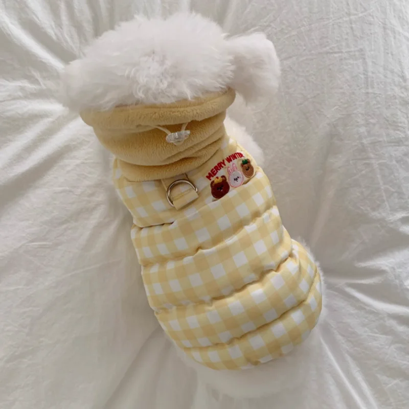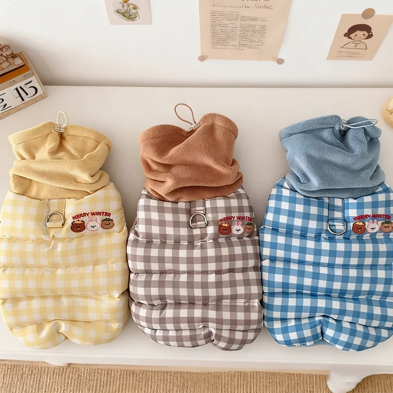 Chaqueta cálida de invierno para perro, sudadera con capucha a cuadros para perro, ropa para cachorros con estampado de dibujos animados, chaqueta suave para gato, abrigo, ropa para perro Chihuahua