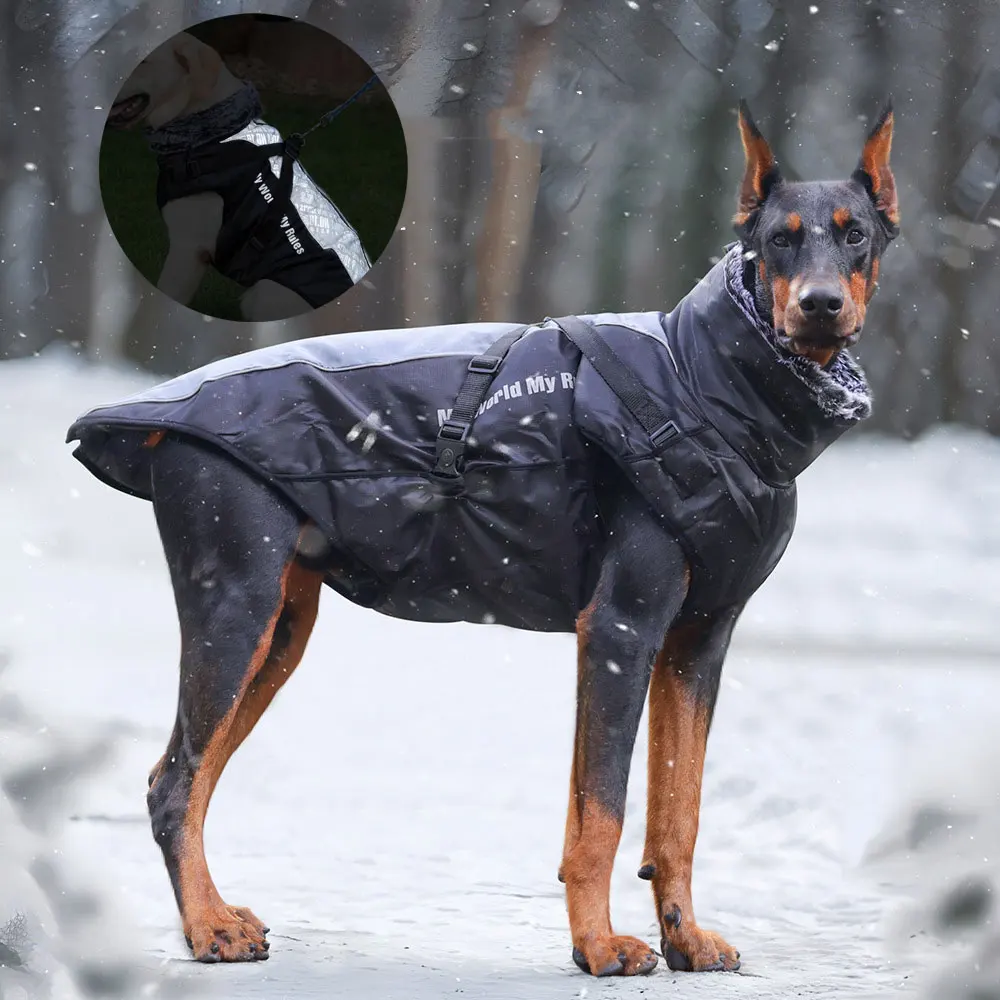 Chaqueta cálida de invierno para perros, abrigo reflectante impermeable a prueba de viento para exteriores, ropa para mascotas con cuello de piel, suministros para perros medianos y grandes