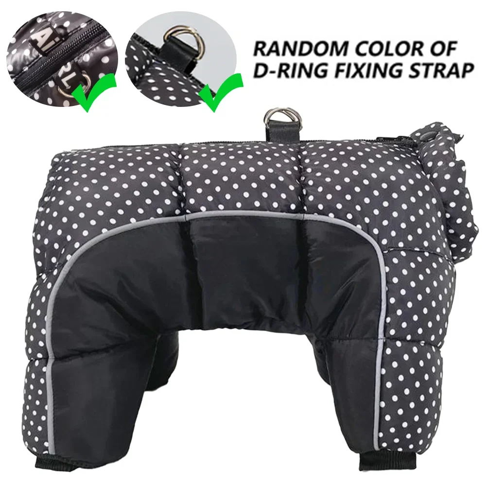 Chaqueta cálida de invierno para perros pequeños y medianos, mono para cachorros con estampado de lunares, abrigo reflectante para mascotas, abrigo de Bulldog Chihuahua con anillo en D