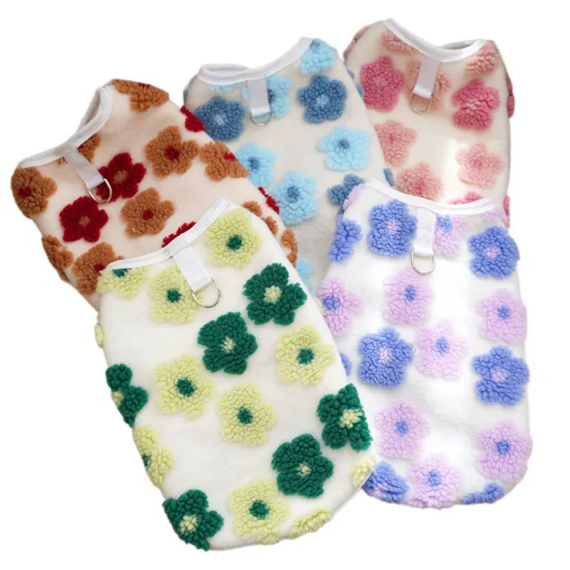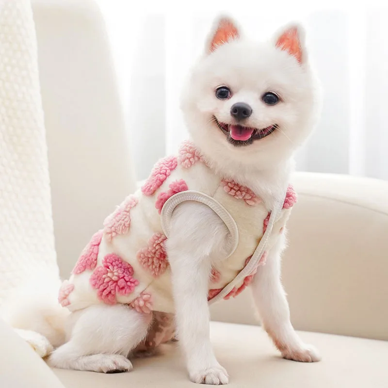 Chaqueta cálida, ropa de invierno de lana con flores para perros pequeños, ropa sin mangas de Chihuahua Dachshund, abrigo, chaqueta para disfraces de perros