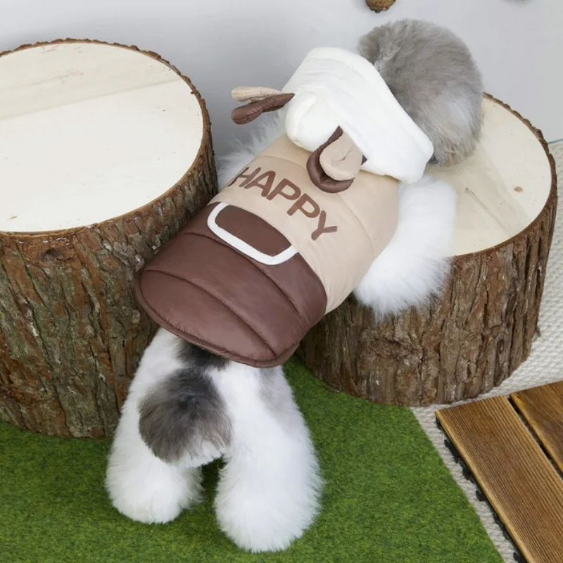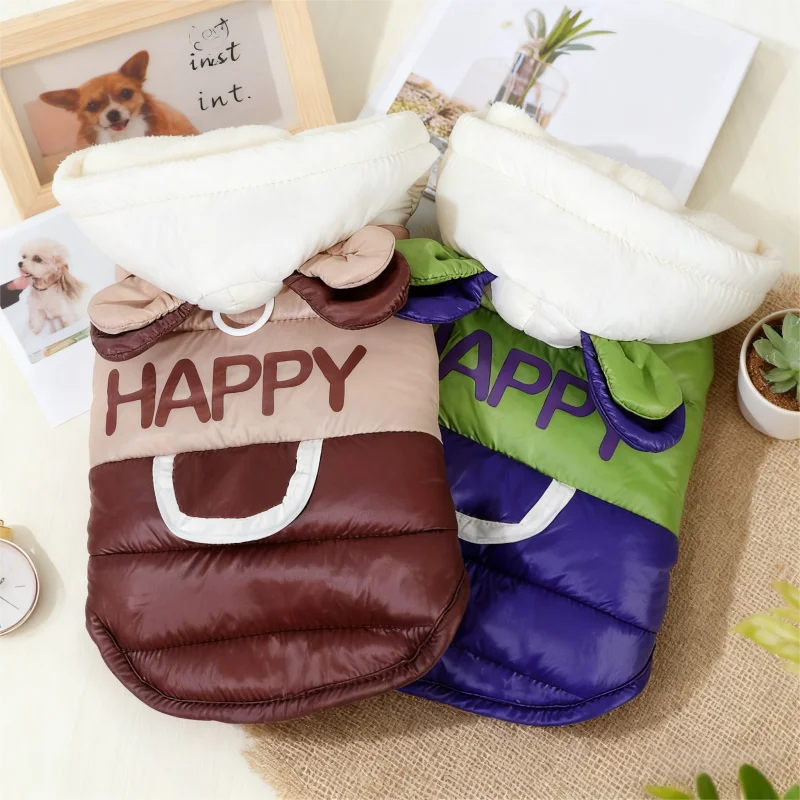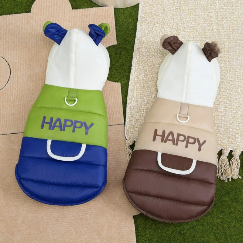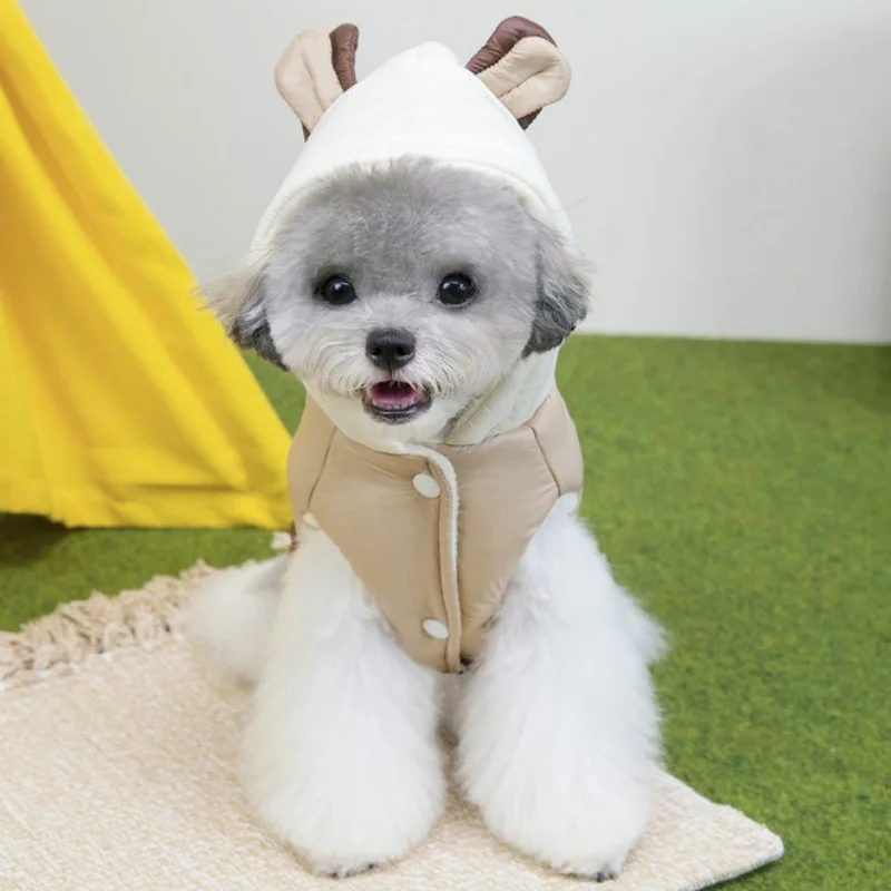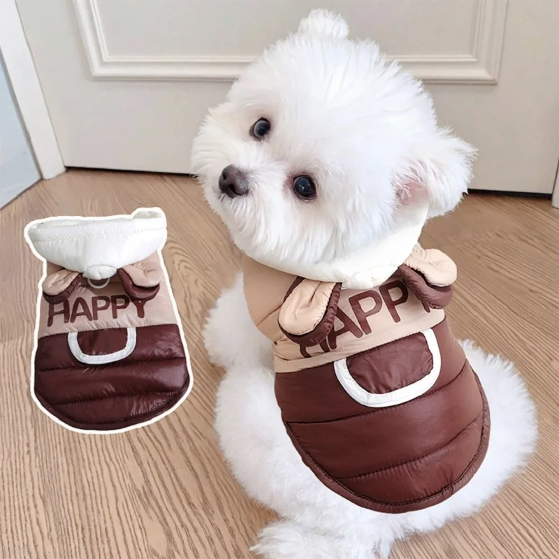Chaqueta cálida y suave para perro, abrigo acolchado de invierno, ropa para perro, orejas de oso, abrigo para cachorro, chaqueta con estampado de letras para gato, disfraz para mascota Chihuahua