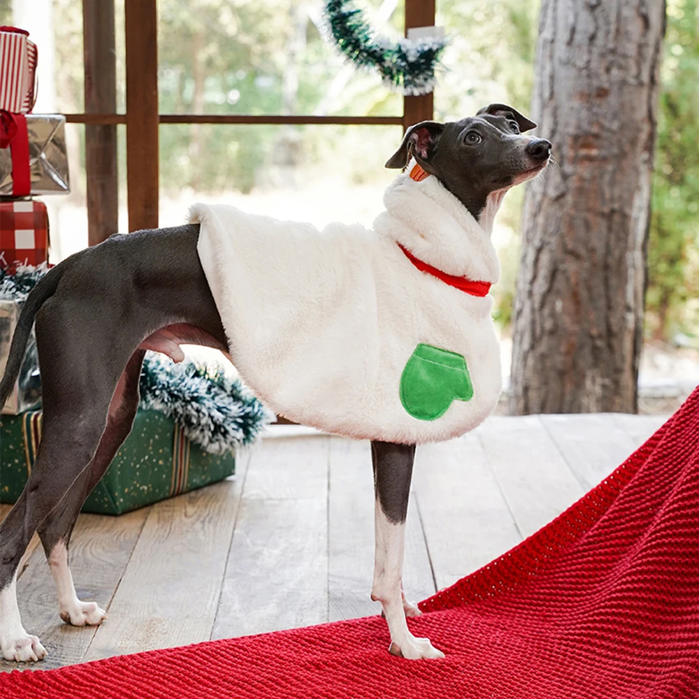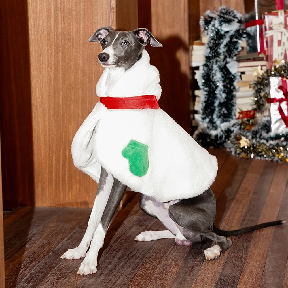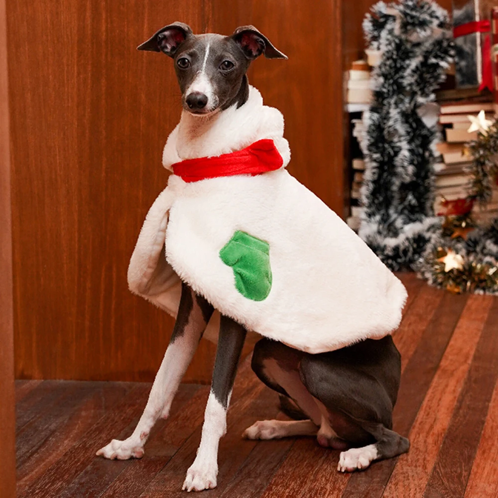 Chaqueta tipo capa blanca navideña para pequeños Italia, abrigo grueso grueso a prueba de viento para invierno, abrigo cálido para perros pequeños