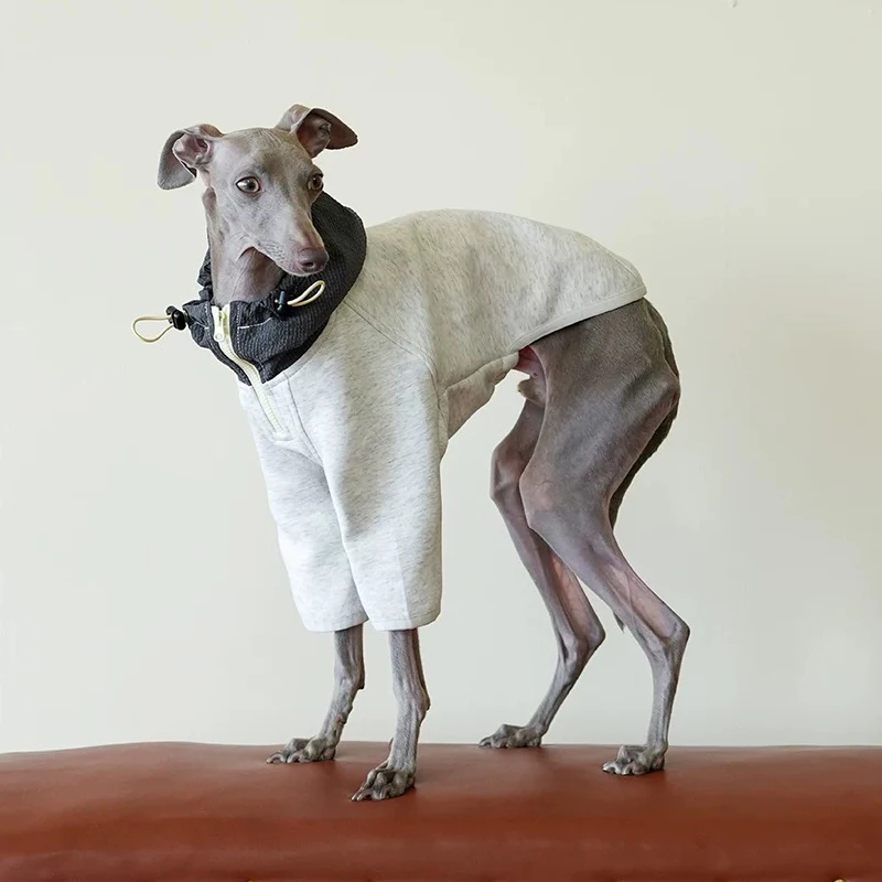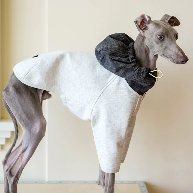 Chaqueta con capucha ajustable de dos patas de otoño para sudadera de moda de galgo italiano con cremallera para perros Whippet de medios pequeños
