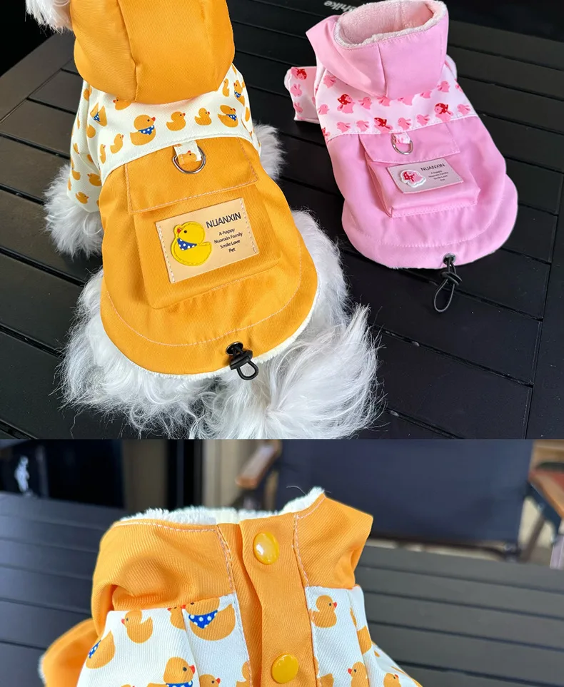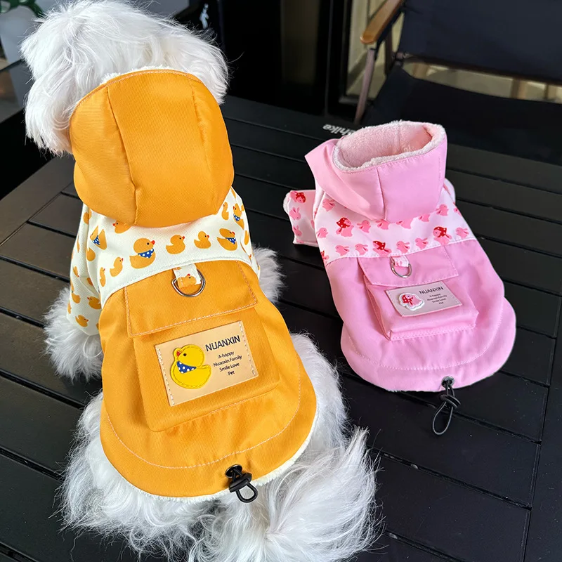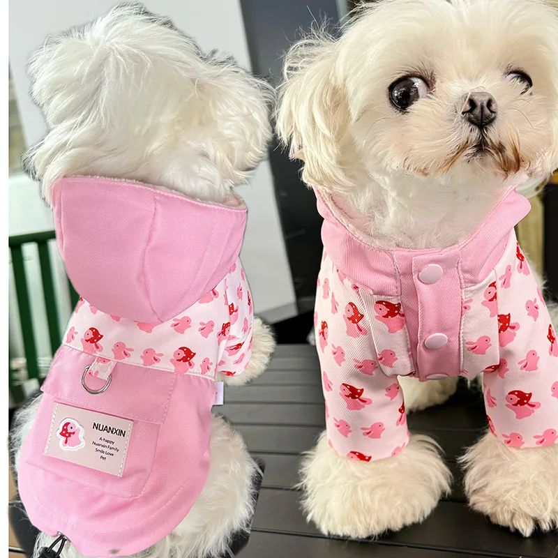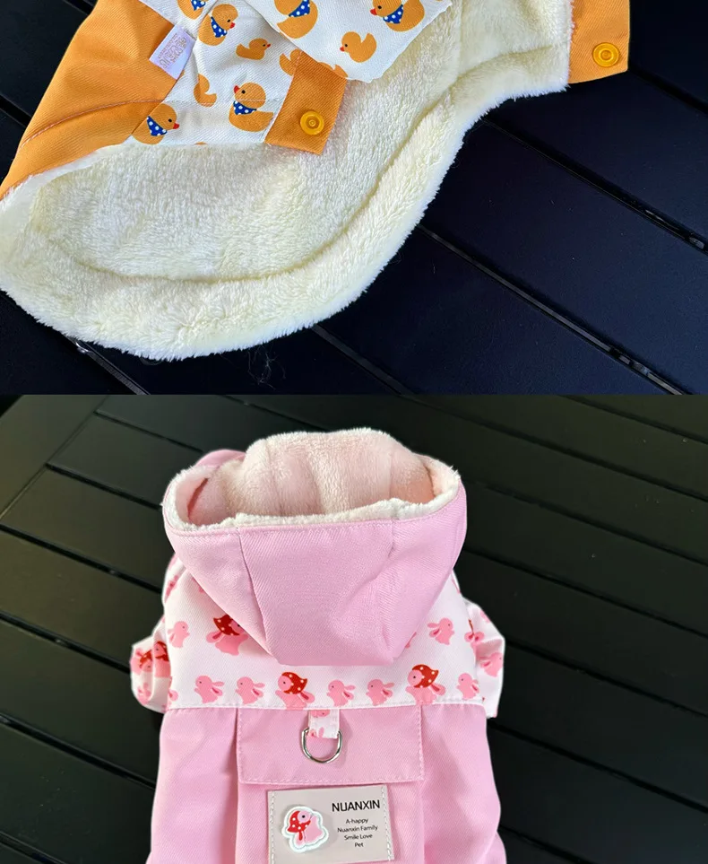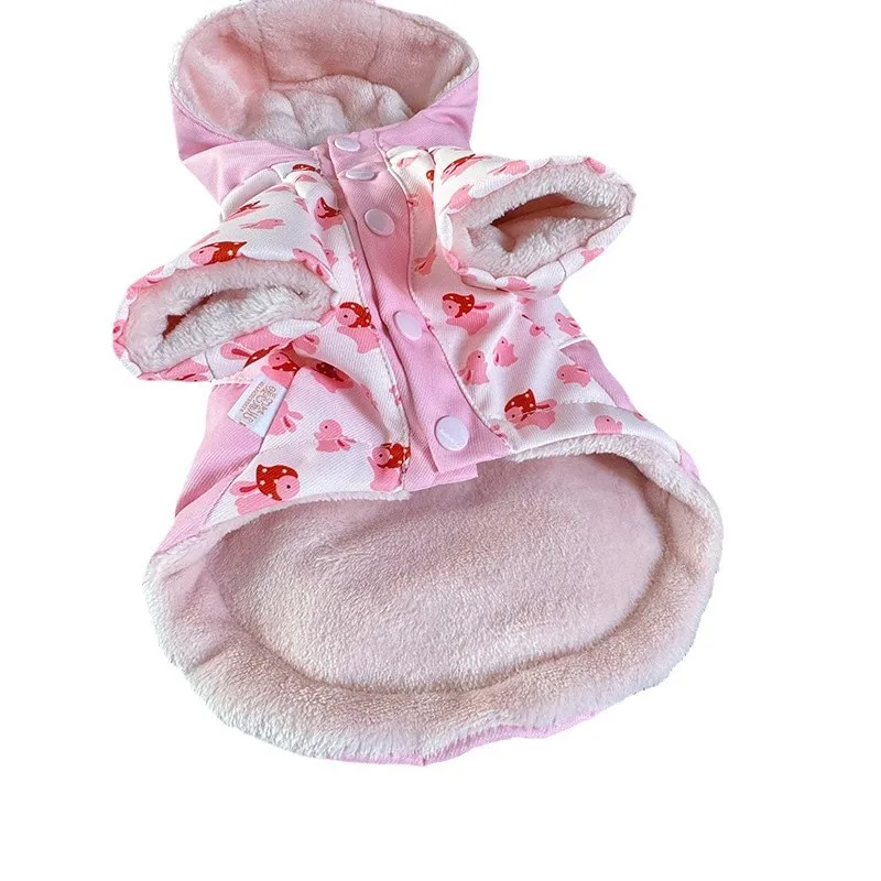 Chaqueta con capucha para mascotas de otoño e invierno, chaqueta de conejito empalmada de doble capa a prueba de viento y felpa, ropa para cachorros y perros pequeños
