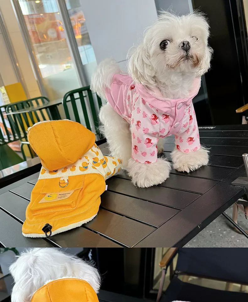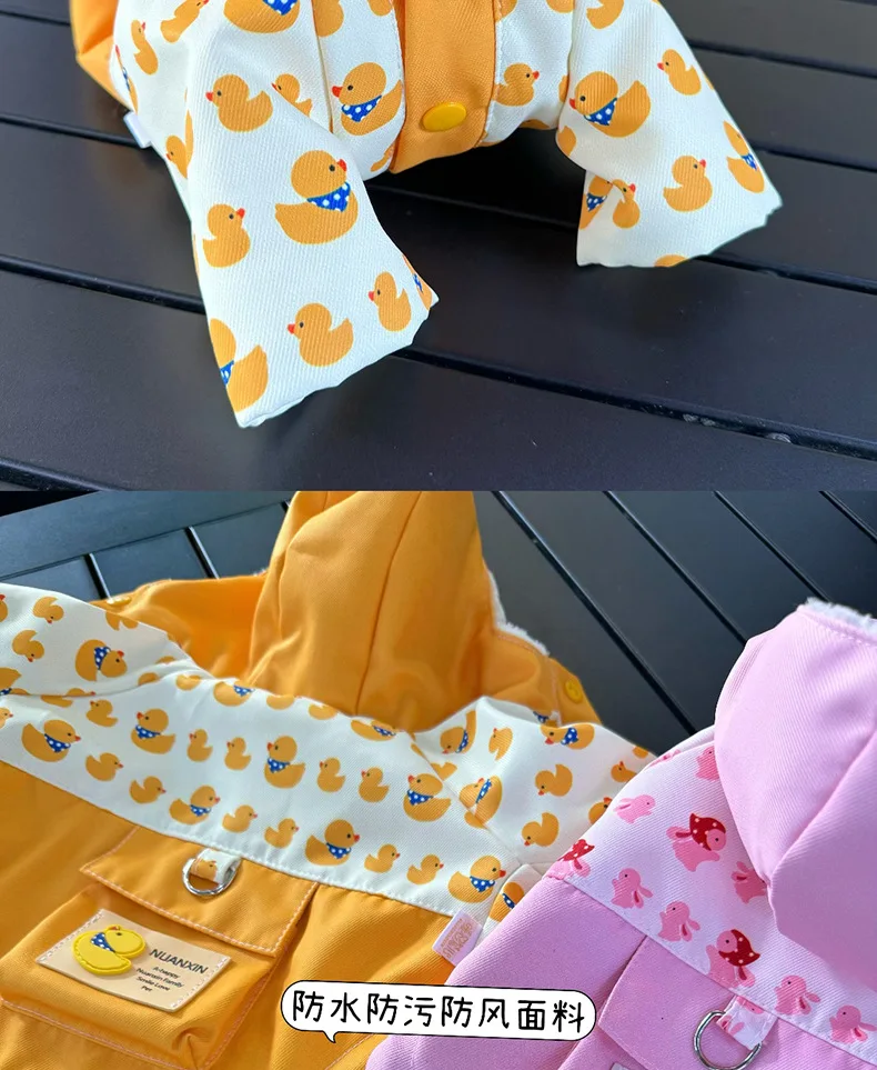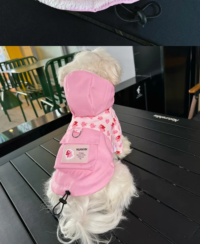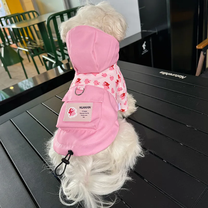 Chaqueta con capucha para mascotas de otoño e invierno, chaqueta de conejito empalmada de doble capa a prueba de viento y felpa, ropa para cachorros y perros pequeños