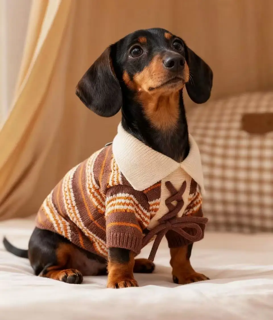 Chaqueta tipo cárdigan con solapa, suéter tejido para perros Wiener, abrigo cálido de manga larga de invierno para perros pequeños y mediados de Dachshund, ropa para mascotas