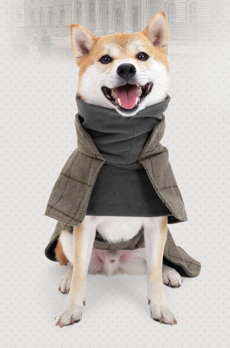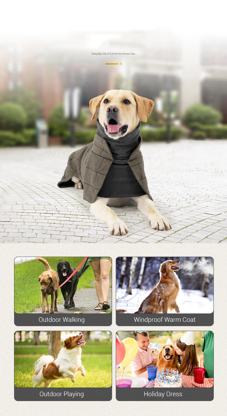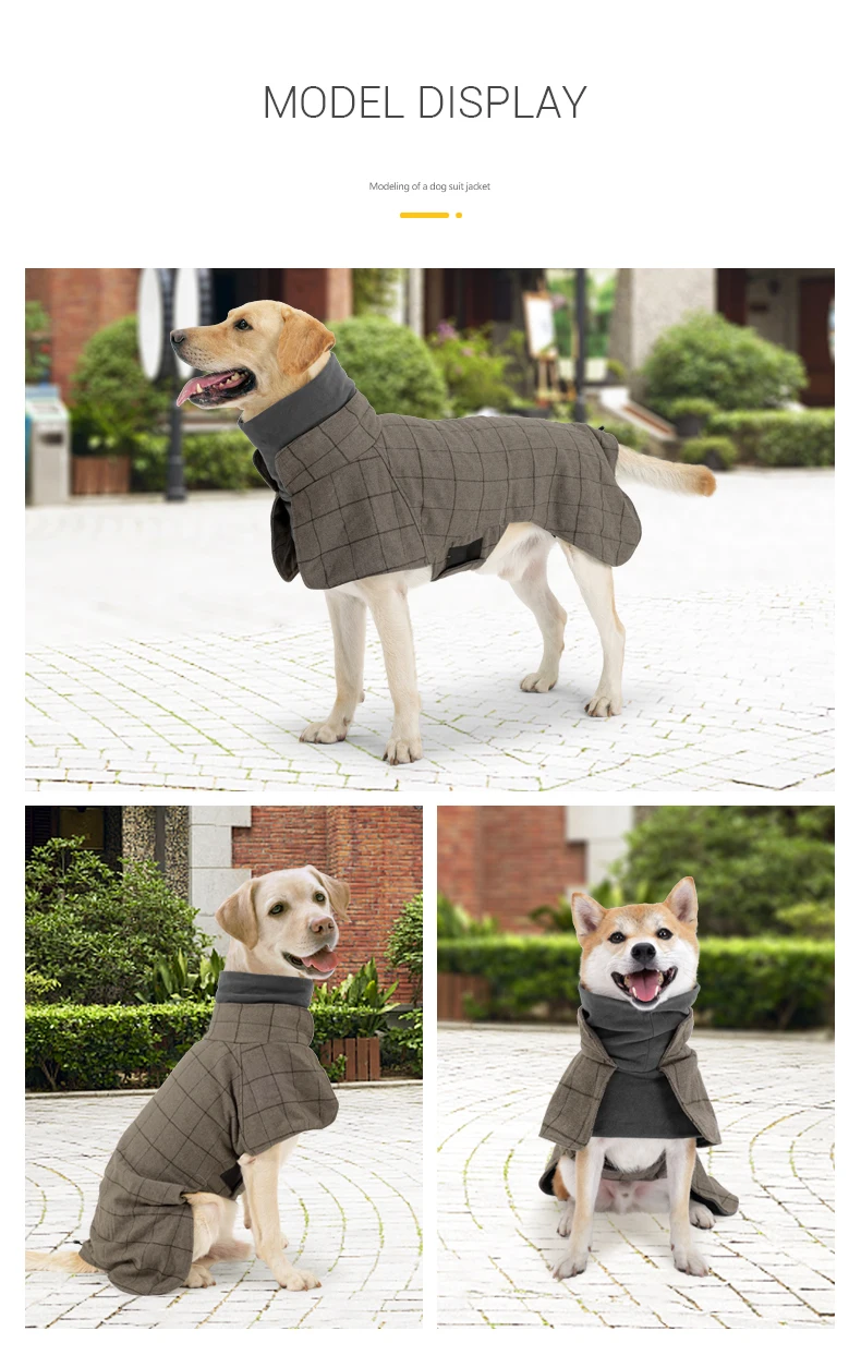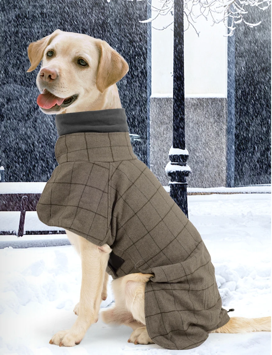 Chaqueta a cuadros a prueba de viento para perros masculinos estilo británico Otoño Invierno abrigo cálido para perros vestido Formal de vacaciones ajustable con forro polar