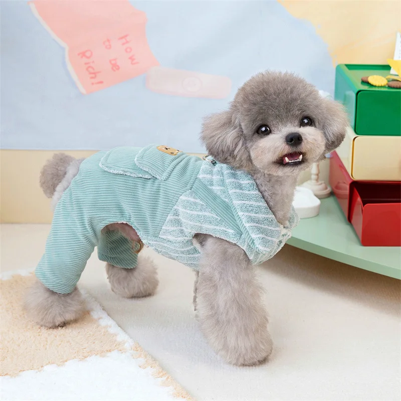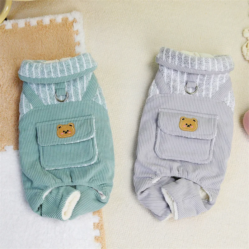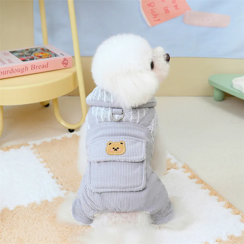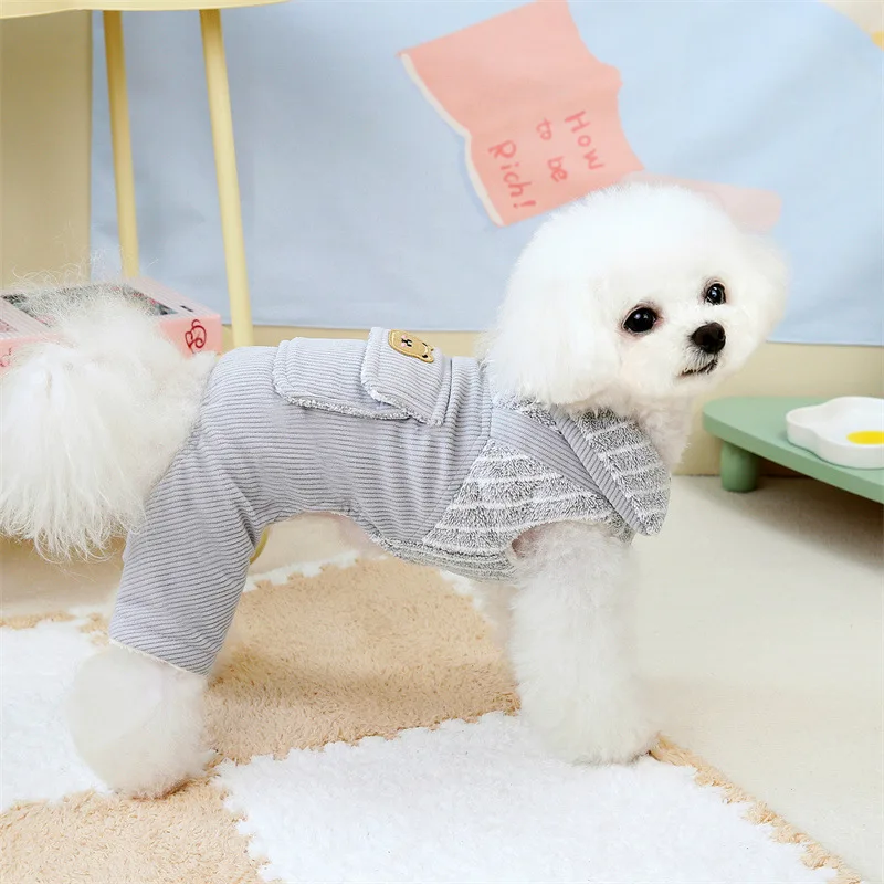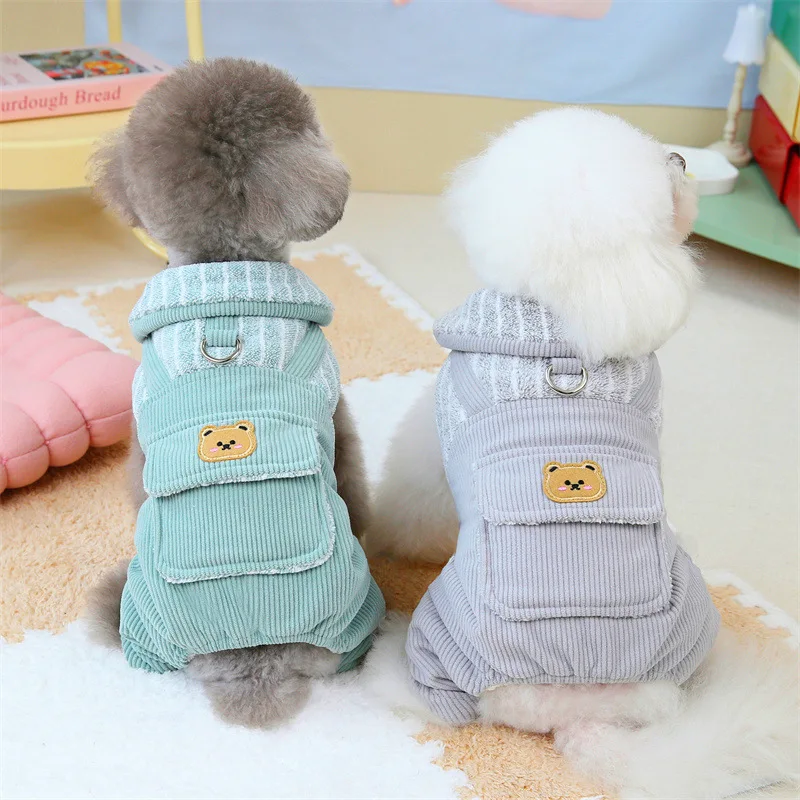 Chaqueta de dormir para perros y gatos, abrigo de algodón de cuatro patas, oso de peluche, ropa para mascotas, mono de pijama para perros pequeños, Otoño e Invierno