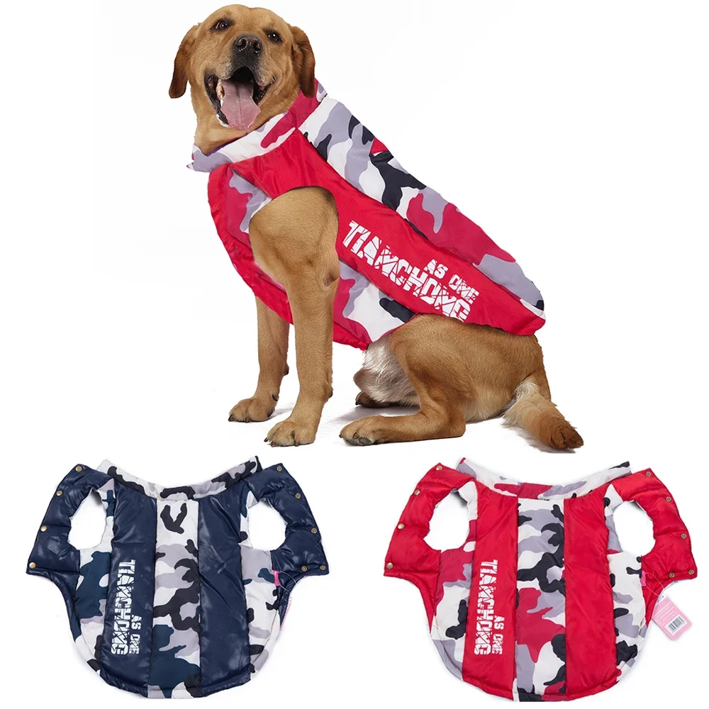 Chaqueta con estampado de camuflaje para perros grandes, ropa cálida de invierno para mascotas, abrigo recuperador dorado impermeable a prueba de viento para perros medianos y grandes