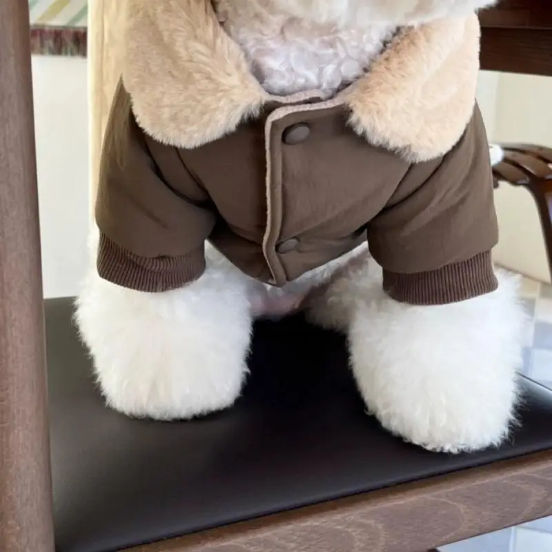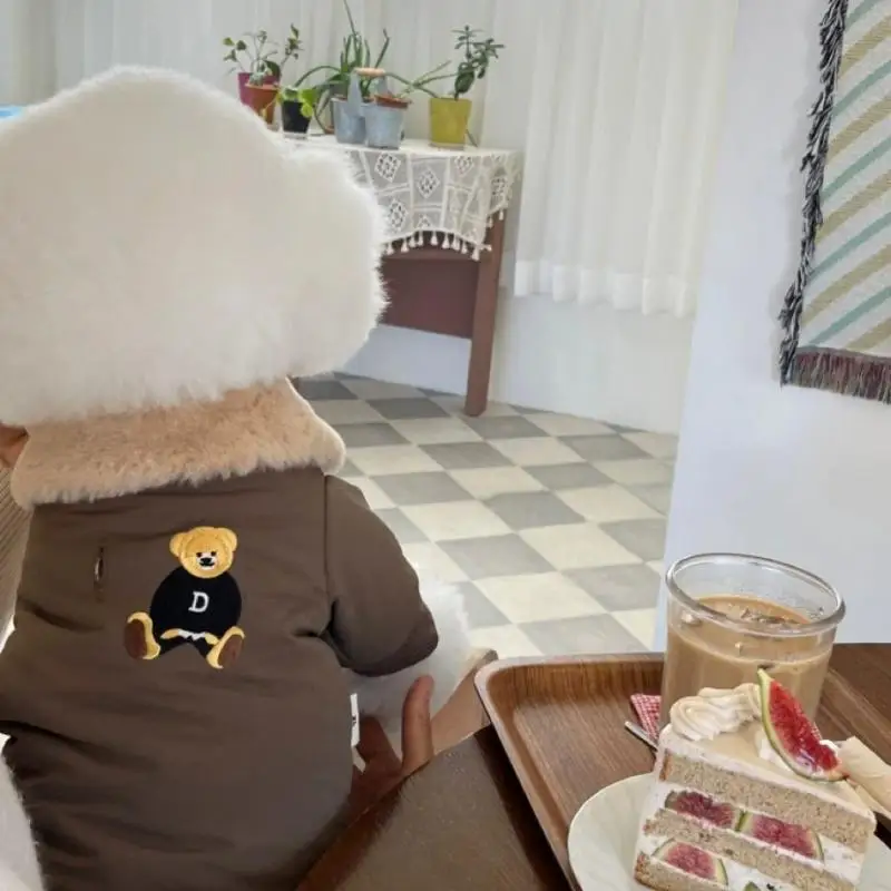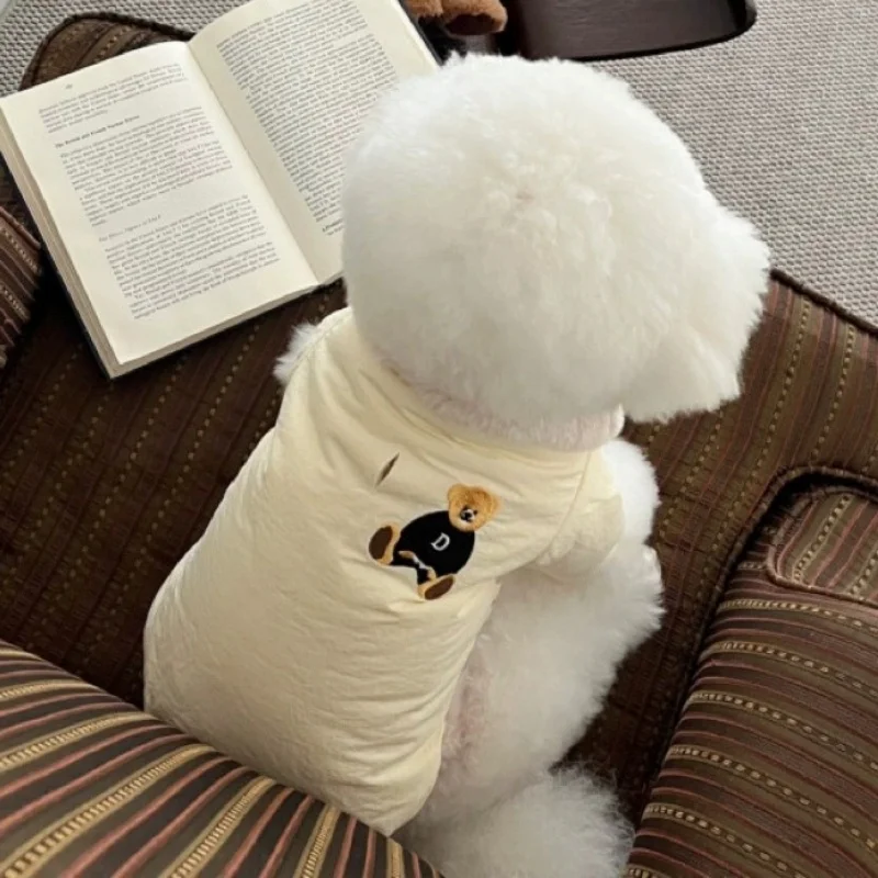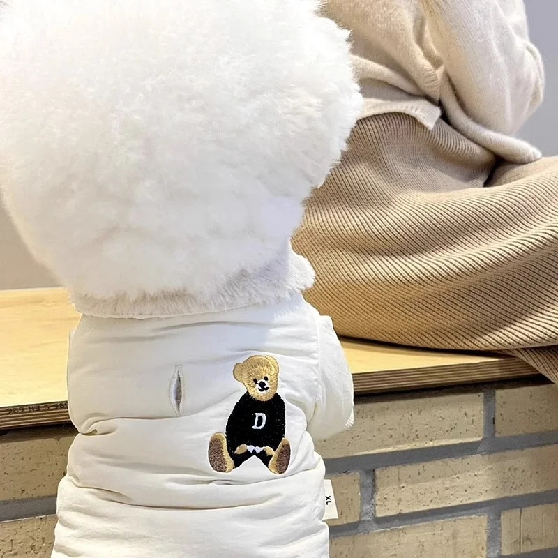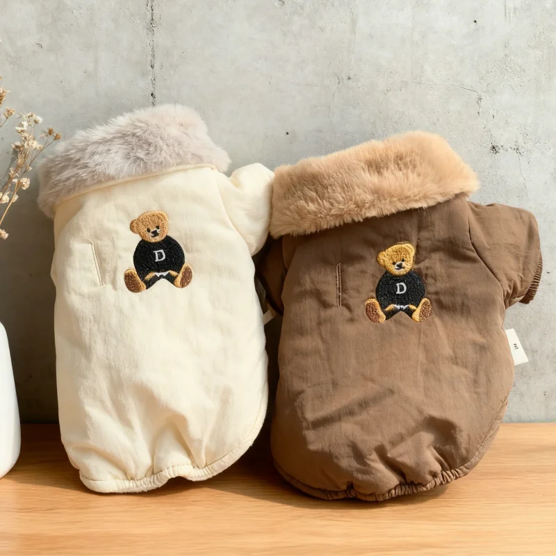 Chaqueta con estampado de oso para perro, abrigo cálido de felpa, ropa para perro, chaqueta acolchada de invierno para cachorro, abrigo suave a la moda para gato, disfraz de mascota de peluche para caniche
