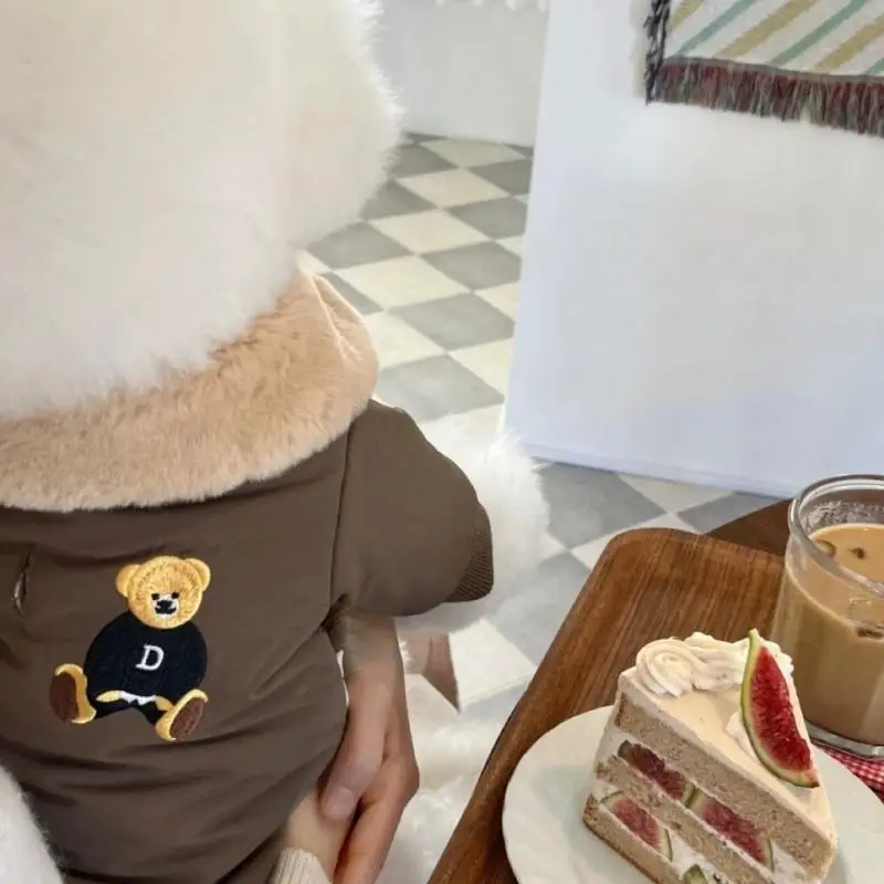 Característica:Bordado de osito/Lindo y divertida/Chaqueta de algodón con solapa/Equipada con hebilla de tracción/Viajes más convenientes/Algodón por dentro/Doble el calor/Hermoso y cálido/Puños elásticos de hilo/Resistente al viento y más cálido/Cómodo pero insoportable pero insoportable