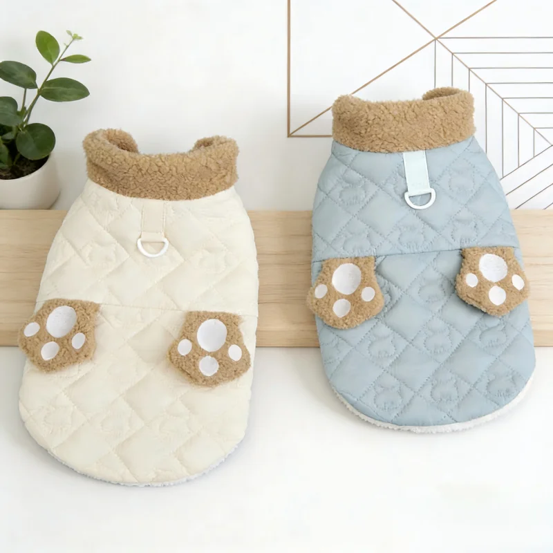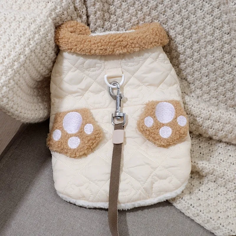 Linda chaqueta con estampado de pata para perro mascota, ropa cálida de invierno para perro, chaleco de felpa a la moda para cachorros, abrigo, chaqueta suave para gato, abrigo, ropa para caniche