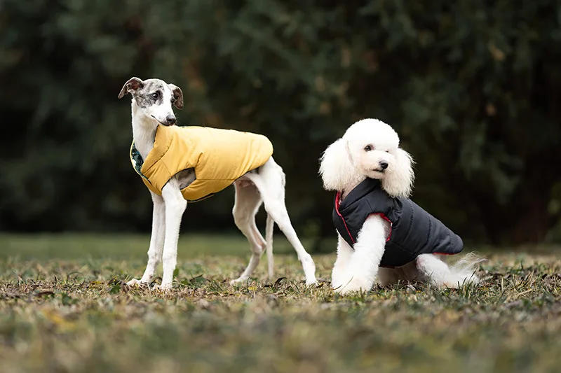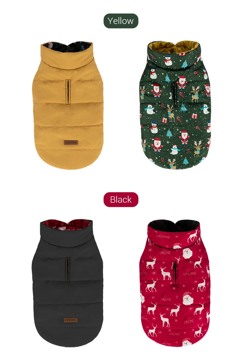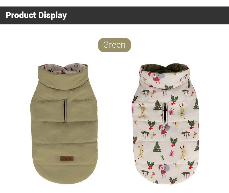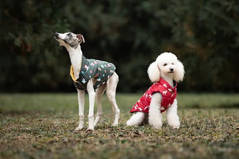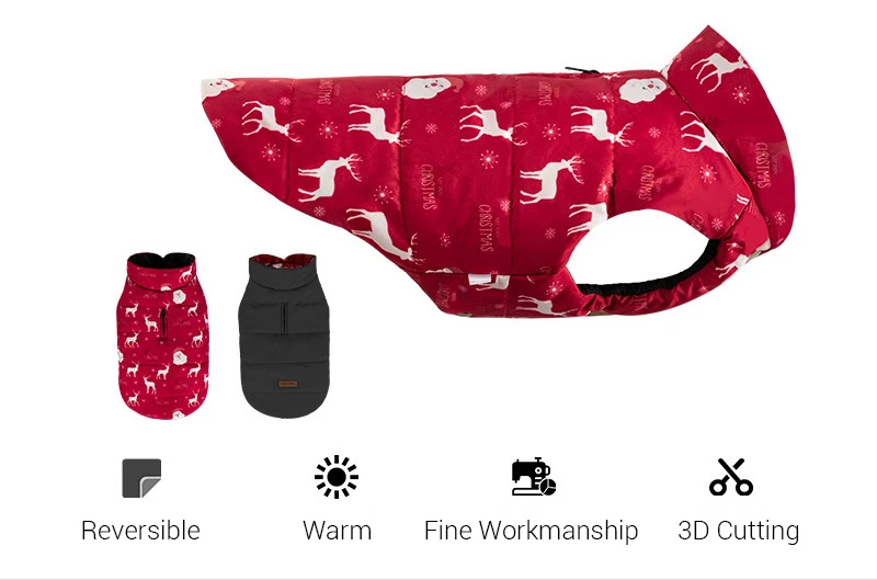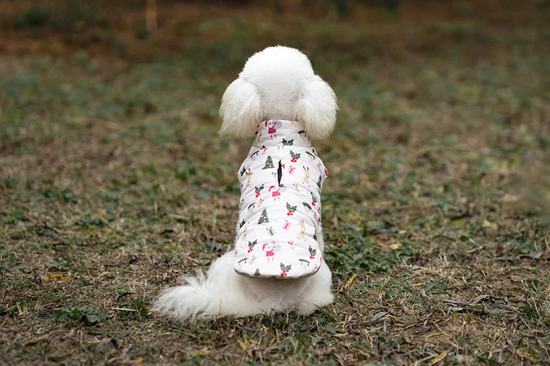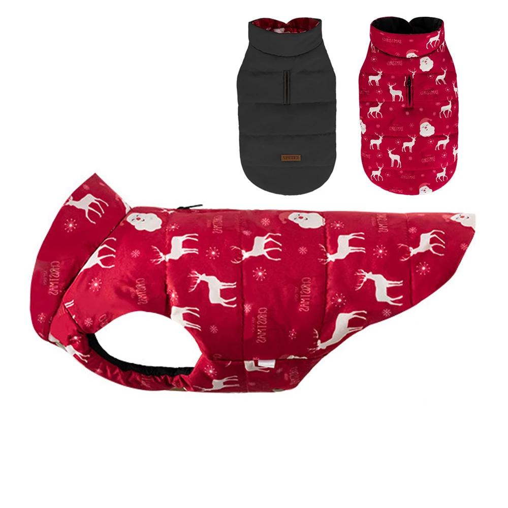 Chaqueta de fiesta para perros, abrigo de invierno Reversible con estampado navideño para perros pequeños, ropa cálida acolchada suave para perros con agujero para correa
