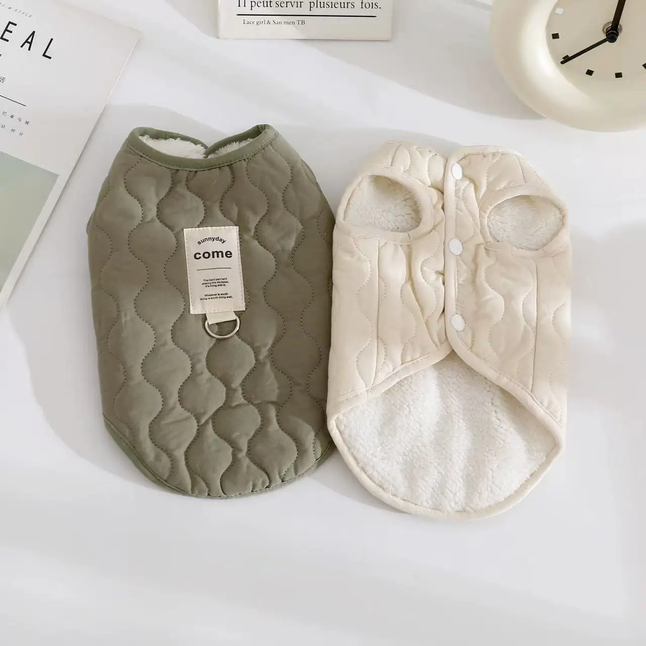 Chaqueta gruesa de lana beige para perros Wiener, chaleco cálido de invierno para perros Dachshund, ropa de descanso suave para perros pequeños con salchichas