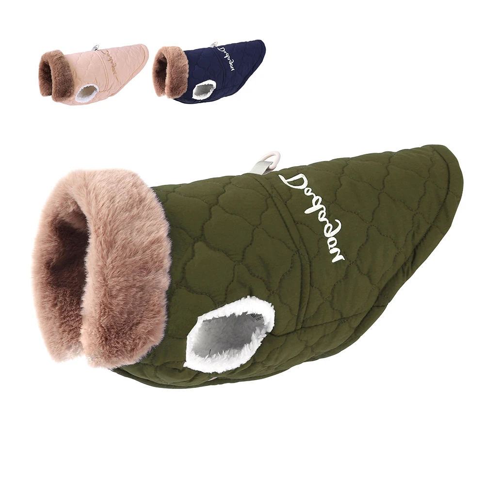 Chaqueta impermeable de invierno para mascotas, ropa súper cálida para perros pequeños con cuello de piel, trajes de algodón para mascotas, abrigo de Bulldog Francés, chaleco