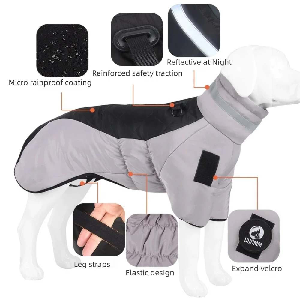 Diseñada específicamente para adaptarse a razas grandes como Bulldogs franceses y Greyhounds, esta chaqueta ofrece un ajuste perfecto para tu amigo peludo.