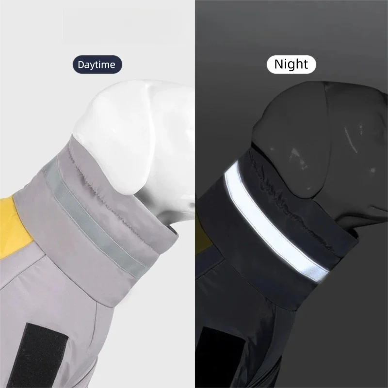 Equipada con un chaleco reflectante, esta chaqueta mejora la visibilidad en condiciones de poca luz, garantizando la seguridad de su perro durante los paseos nocturnos.