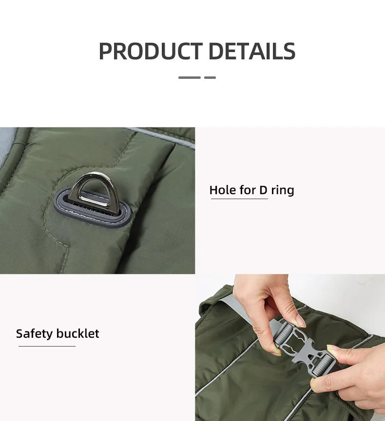 Chaqueta impermeable de invierno para perros con tiras reflectantes, abrigo acolchado cálido para perros, ropa para mascotas al aire libre con forro de terciopelo suave