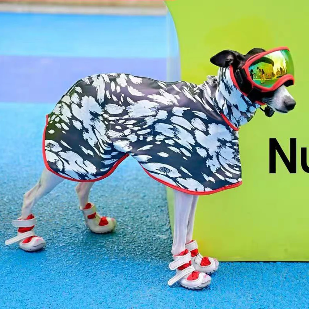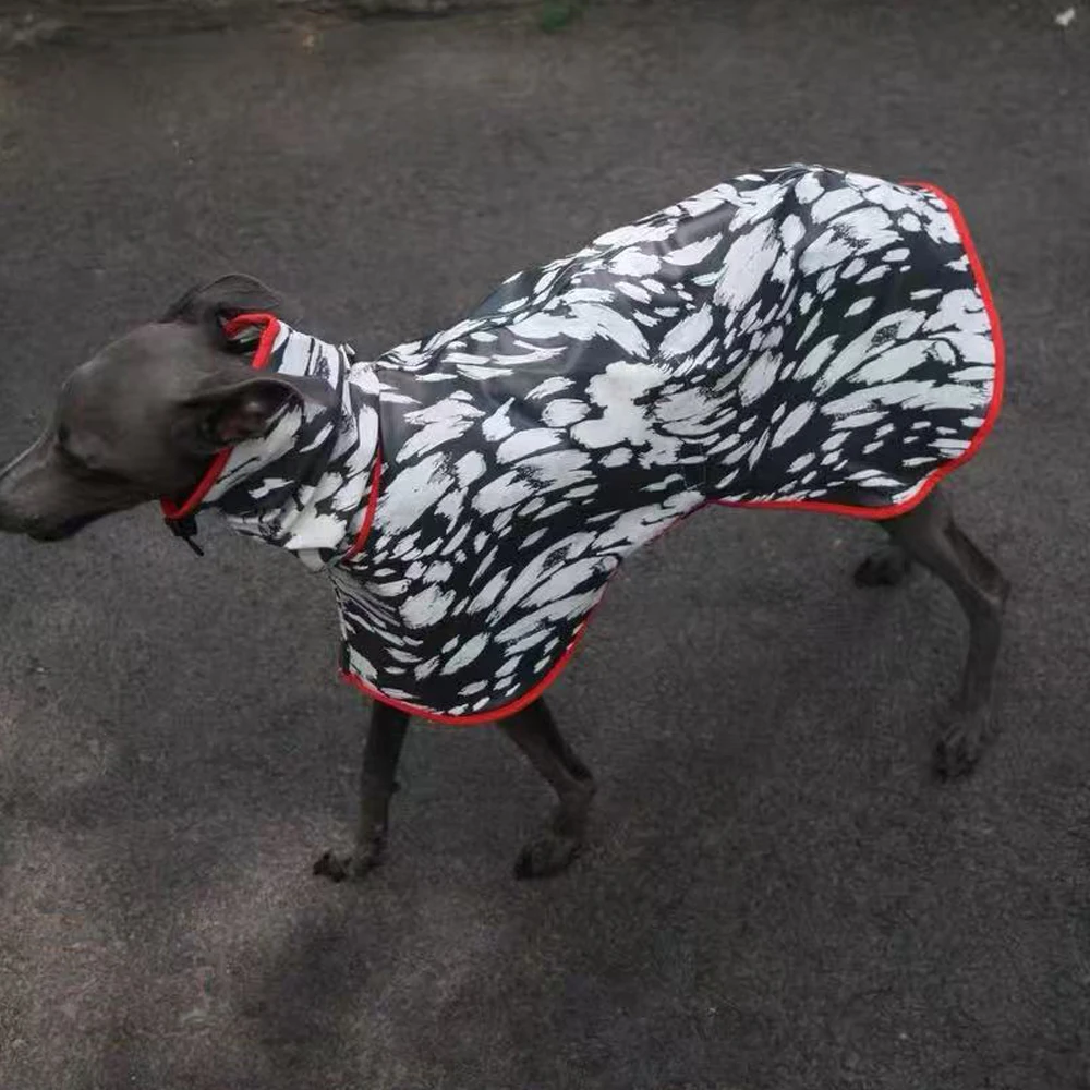 Traje de chaqueta impermeable a la moda para Whippet, abrigo transpirable con estampado de puntos para impermeable de cuello alto de color gris italiano para Terrier