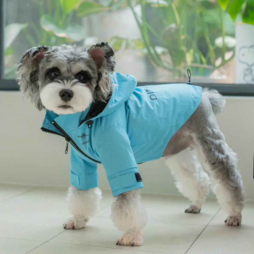 Chaqueta de intercambio para perros a la moda, chaqueta de lujo para perros azules, ropa resistente al agua para perros Schnauzer Teddy Small Media