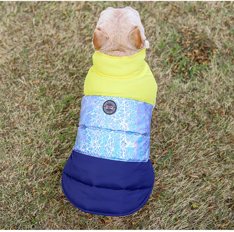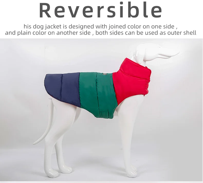 Chaqueta de invierno colorida para mascotas, Parka cálida a prueba de viento, para perros pequeños, medianos y grandes, ropa Reversible para disfraz de Año Nuevo