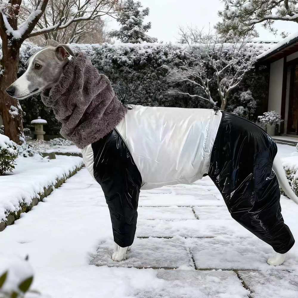 Winter 4-legged Thick Fur Collar Jacket for Italian Greyhound Windproof Waterproof Warm High-Neck Coat for Whippet Dogs