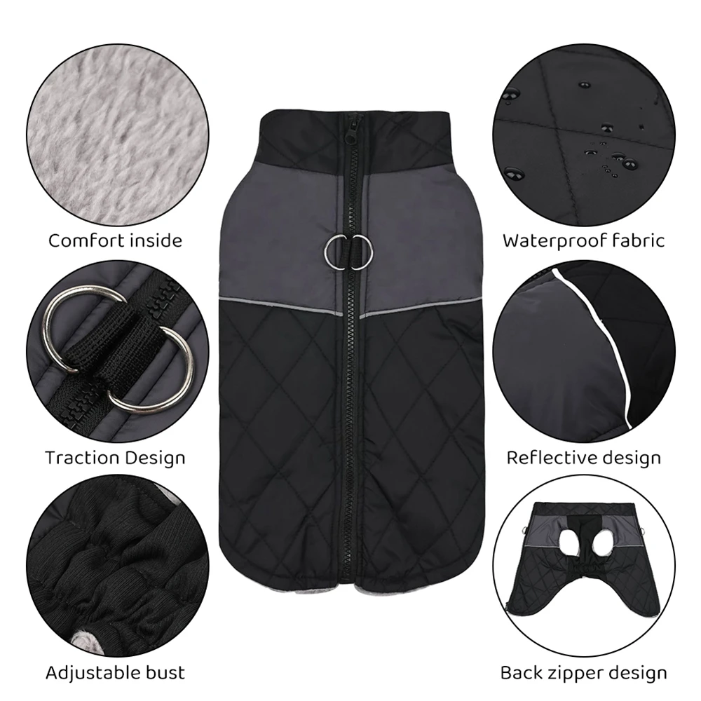 1. Diseño impermeable: la chaqueta de viento de material impermeable mantiene a su mascota seca y cómoda bajo la lluvia, fácil de limpiar y mantener limpia