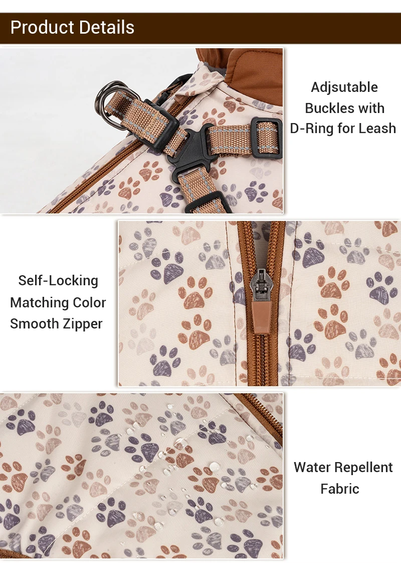 Material:Poliéster impermeable + acolchado de algodón + forro polar