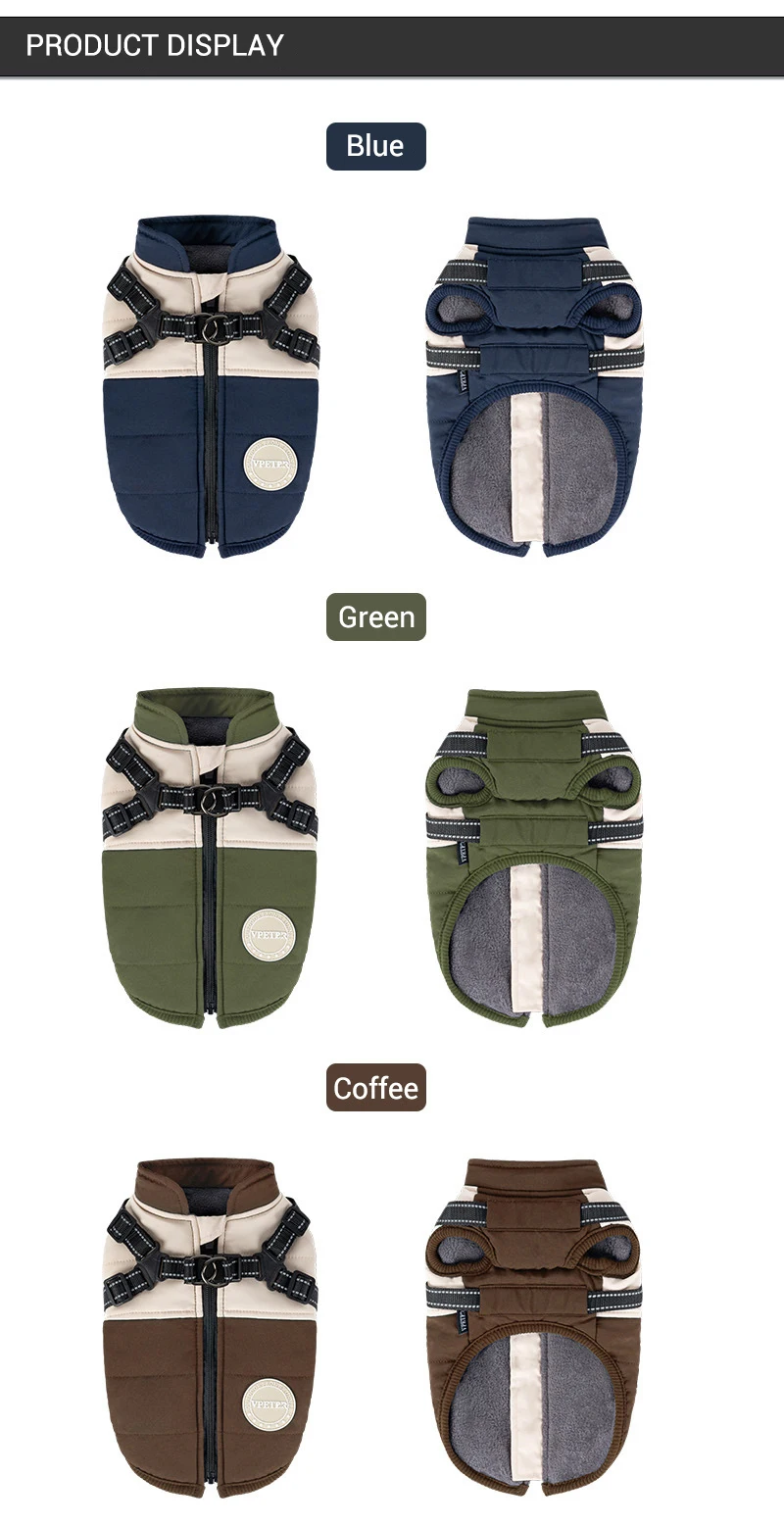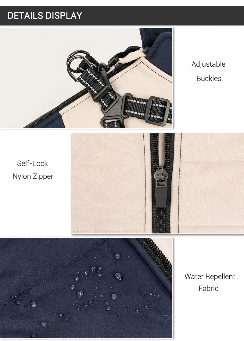 Característica:Cálido, repelente al agua, reflectante, ajustable, con arnés