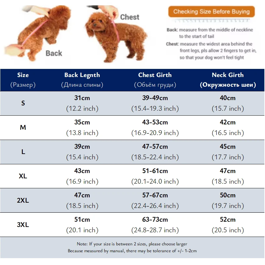 Por favor mide el de tu perro.Longitud de la espaldayTamaño del pecho¡antes de comprar!