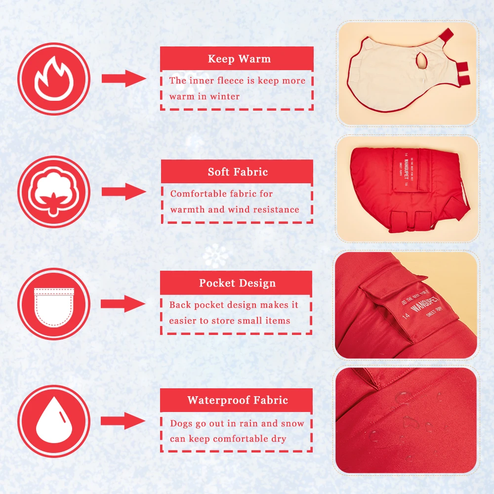 Protege a tu compañero del frío más intenso con esta chaqueta de lana gruesa WANGUPET. Diseñada con tecnología de doble capa - exterior impermeable y forro polar grueso - esta prenda ofrece protección completa contra lluvia, nieve y temperaturas extremas. Perfecta para Bulldog Francés, Labrador y todas las razas que necesitan calor extra durante los meses de invierno.